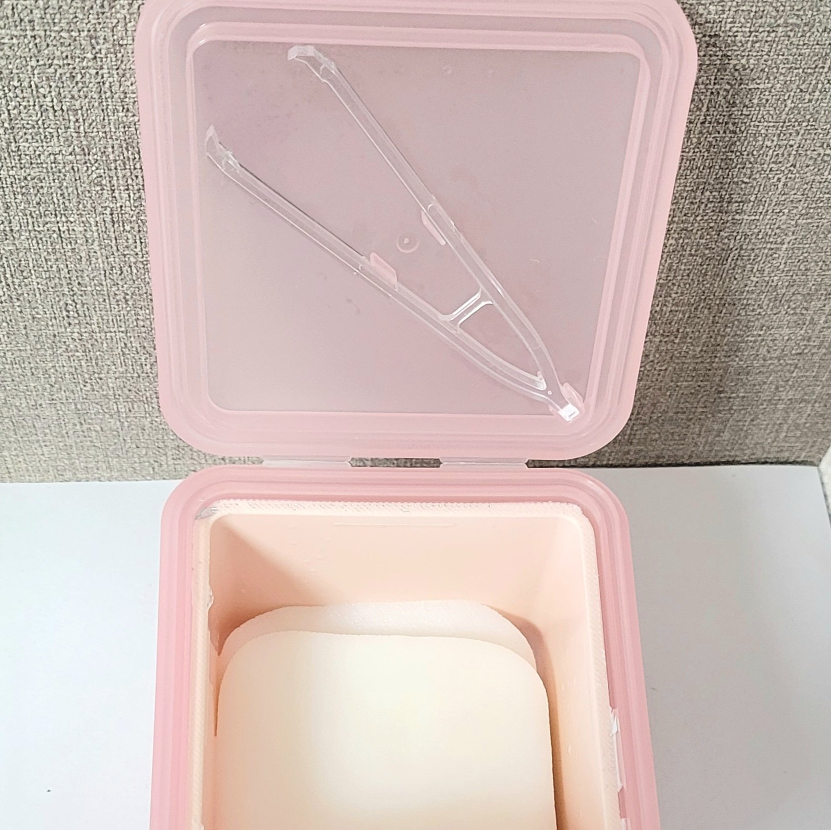低分子コラーゲンを含んだきめ細かい生地のパッドがしっとりなめらかな肌へとケア ハリが不足してる肌にうるおいを与え、弾力のある肌に導く 液は乳白色かな??底に液は溜まってませんが、蓋側に付いてるピンセットで押すとヒタヒタに浸かってました。