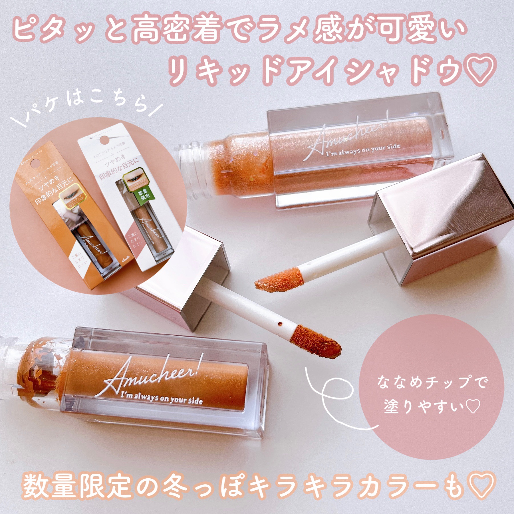 - 高発色×高密着×ラメ感持続のリキッドアイシャドウ。 セミマット・パール・グリッターの3タイプで異なる質感を楽しめます。 密着性の高い柔らかなジェルとサラサラのコートが肌にフィットし、まばたきしてもヨレにくい目元を叶えます。