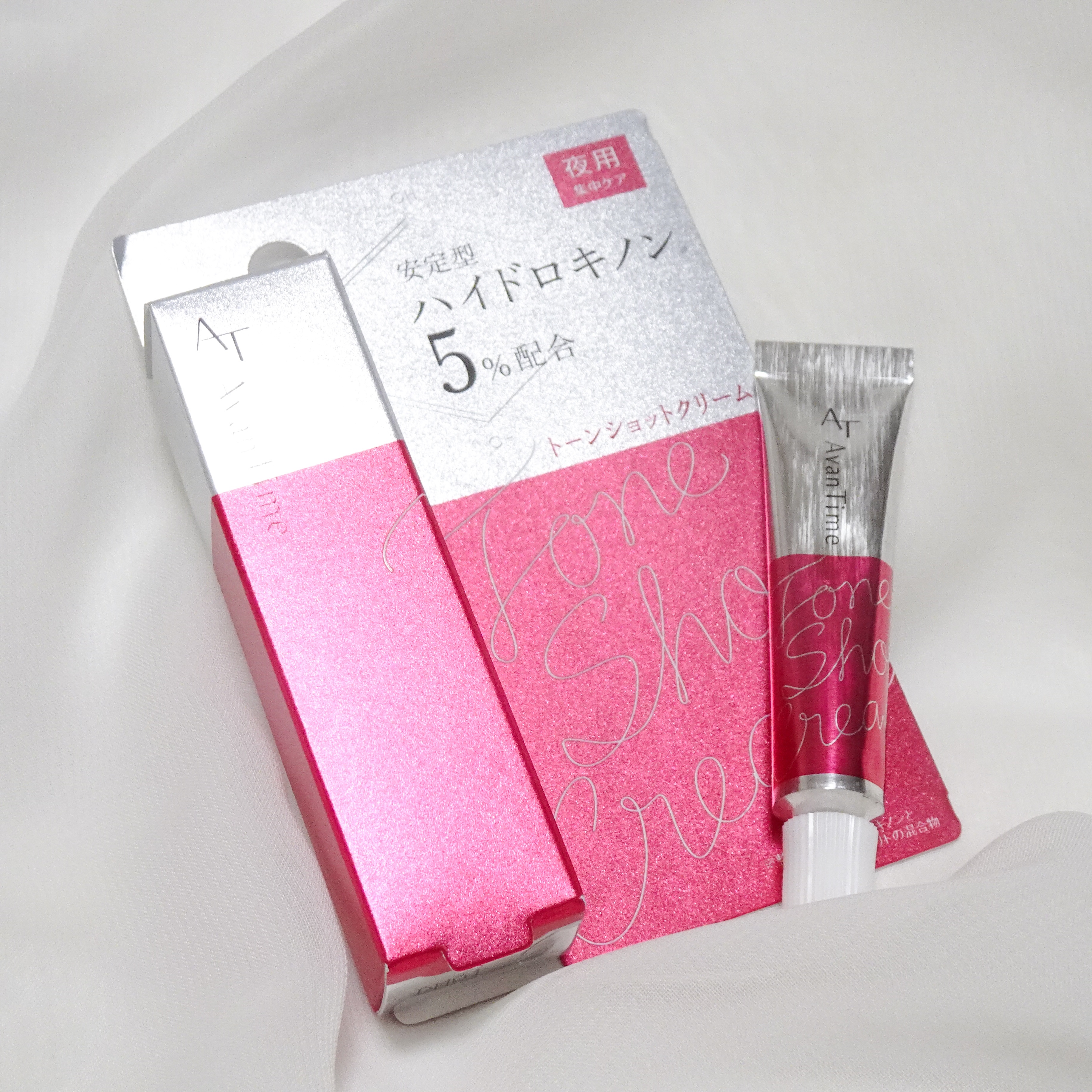 - 「アバンタイム トーンショットクリーム」は安定型ハイドロキノン SHQ-1を5%配合したクリームです。成分が徐々に溶け出しターゲットエリアにアプローチする製品設計であるため、肌にやさしく持続的な作用が期待できます。滑らかで密着しやすいクリームタイプなので、気になる部分を集中的にピンポイントケアすることが可能です。夜のスキンケアの最後に、お肌の気になるポイントにご使用ください。
