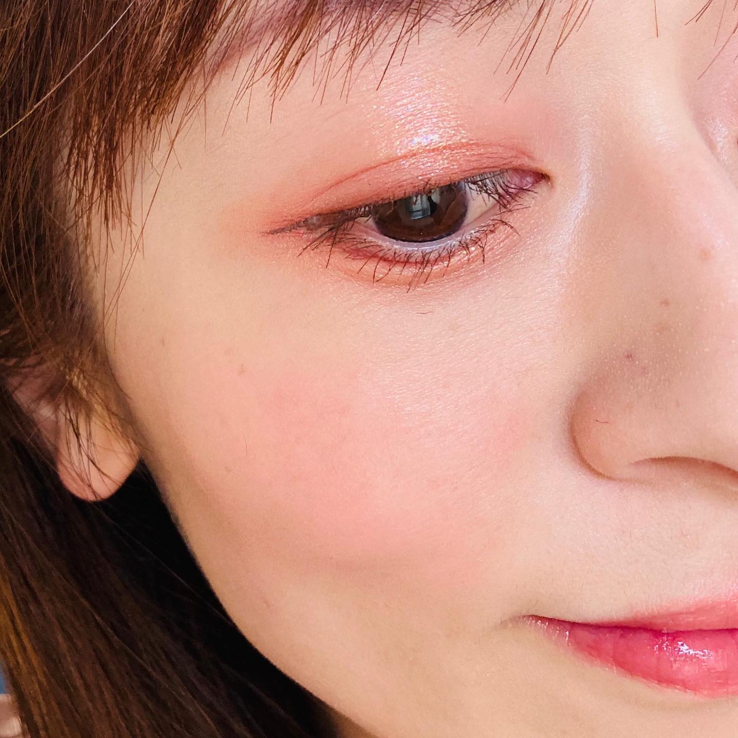 マットは肌に溶け込むような粉質でボソボソしません! シマーのしっとりした粉質も密着してくれて好き!!! 1番キラキラなのは右上のラメですね🍑💓でも粒が大きくないので、大人も使いやすいラメだと思います🥰 どの色使おうか迷うけど、どれ使っても本当可愛くて、自分が桃になったかのような🍑(笑)多幸感あふれるパレットです💘