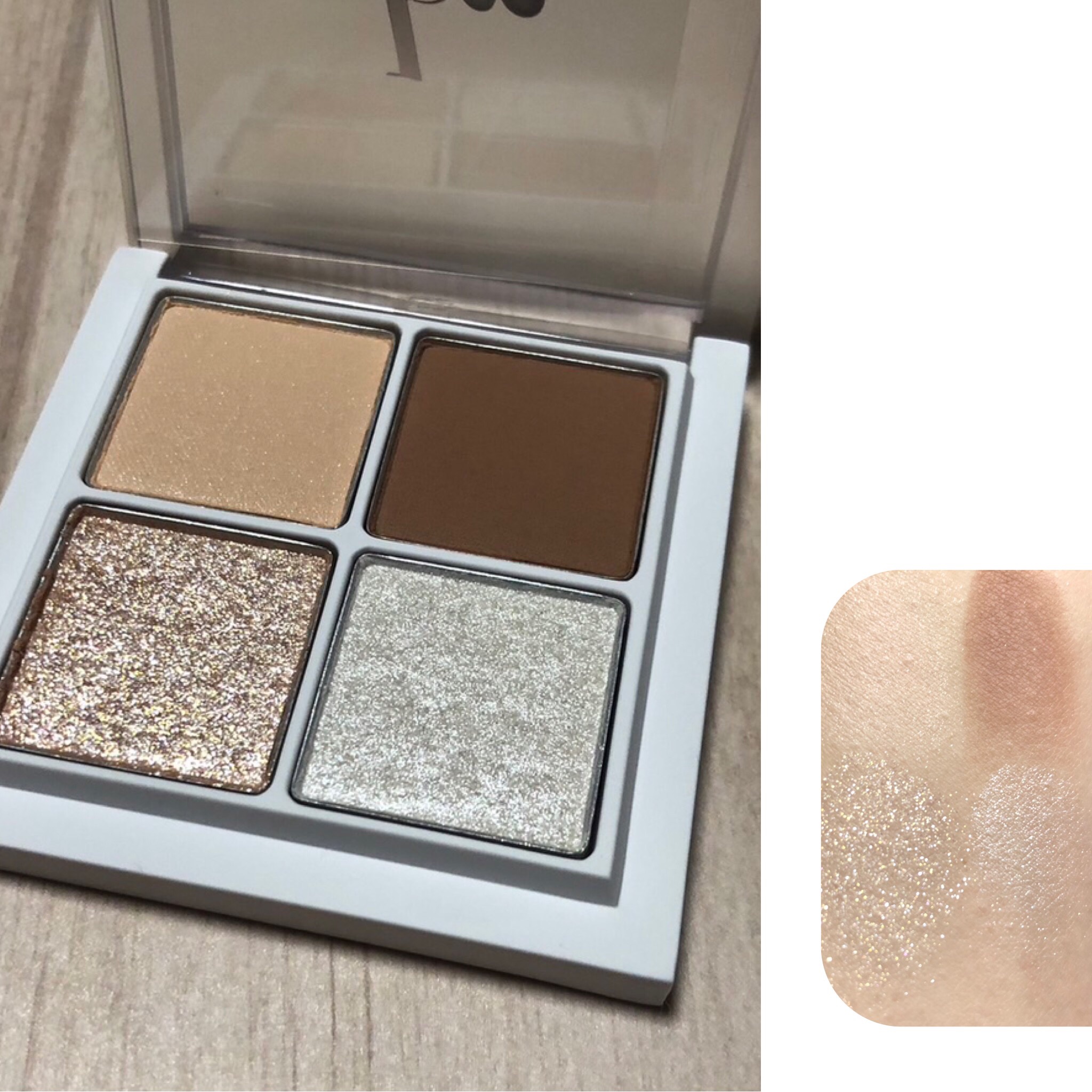 14.キャラメルブラーリング 悩んだら縦で使えば悩まない!との事で縦に使ってみたのですが、4パターン全て違くて同じブラウンメイクでも楽しめます! ベースカラー、中間色、締め色全て少しずつ違うので縦で使わなくても色々なカラーバリエーションを楽しめます! 14は普段使いしやすい色ばかりなので#スクールメイク や#オフィスメイク としても使えますし、ラメを使えば華やかな印象にもなるのでどんなシーンでも使えるかなと思いました! パレット自体は薄いですが、大きさがあるので持ち運びだとバックによるかなと思うので、お直ししたいと思った時はバックを考えるか、その時は違うパレットを使うのがいいのかなと思います!
