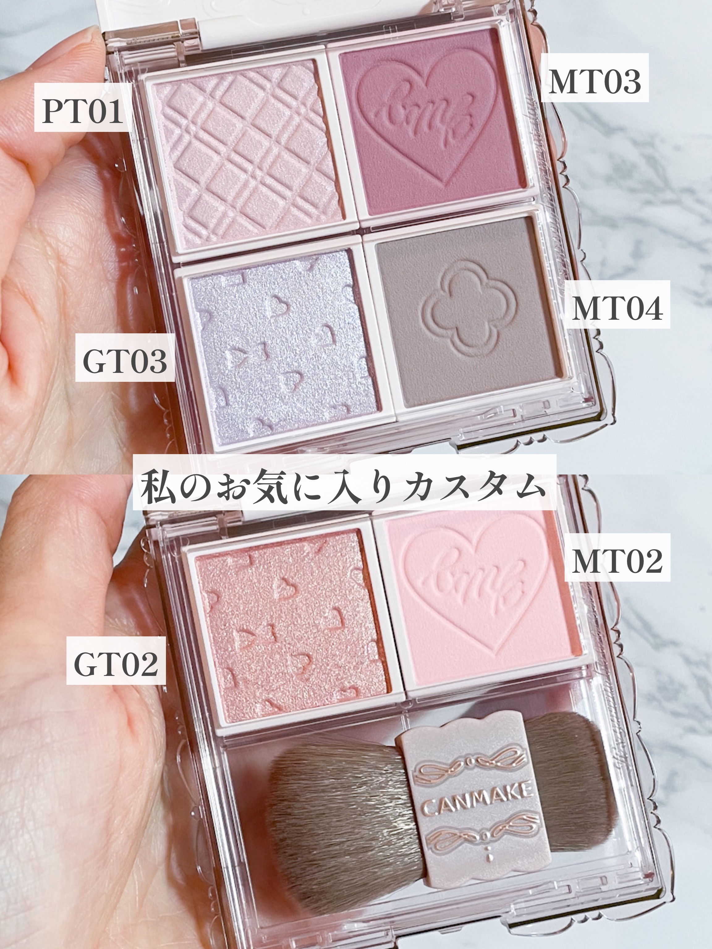キャンメイクのマイトーンクチュールです!これは自分で色を選んで購入し、カスタムできるパレットとなっています🤍 私はブルベ夏なので、ブルベ夏に似合いそうなカラーを詰め込みました🫧 自分のお気に入り色やよく使う色だけをまとめて持ち運べるので旅行などの際にも便利で気に入っています!
