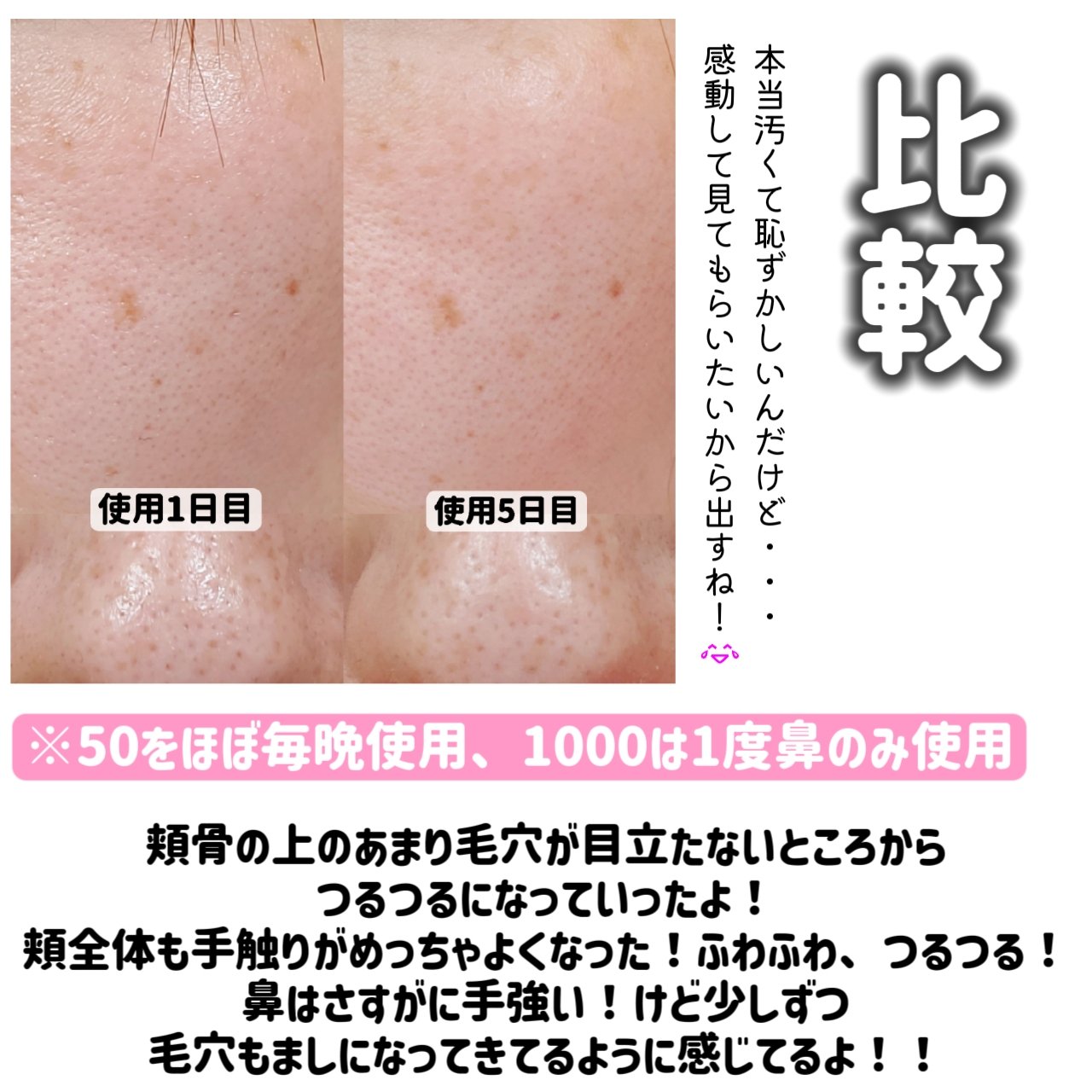 テクスチャーはかため!でものびるし密着する感じが✨ 2週間毎晩使用。ほうれい線が浅く、そして短くなってる感じが……!!! 本当にこんなに変わるとは思っていなくて、本当に購入してよかったなーと思いました!