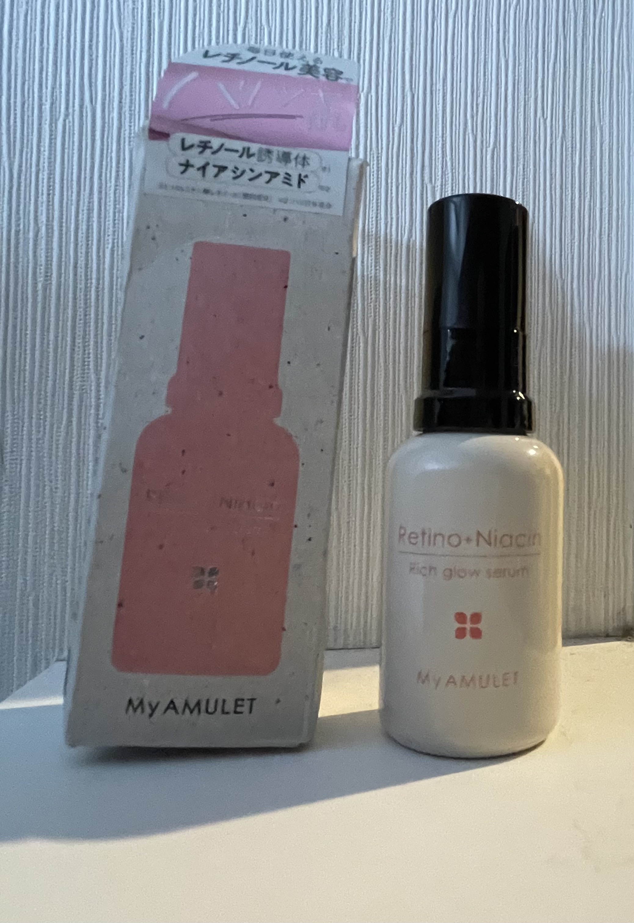 マイアミュレットのリッチグロウセラムお試しさせていただきました✨ レチノール誘導体とナイアシンアミド配合、これ一本で美容液は十分🥰 アロマ系の香りが癒やされる〜🥳 サラッとしたテクスチャでべたつかず、だけどしっとりしててかなり好み! 夜に使う予定!しばらく使ってみて経過載せます✨