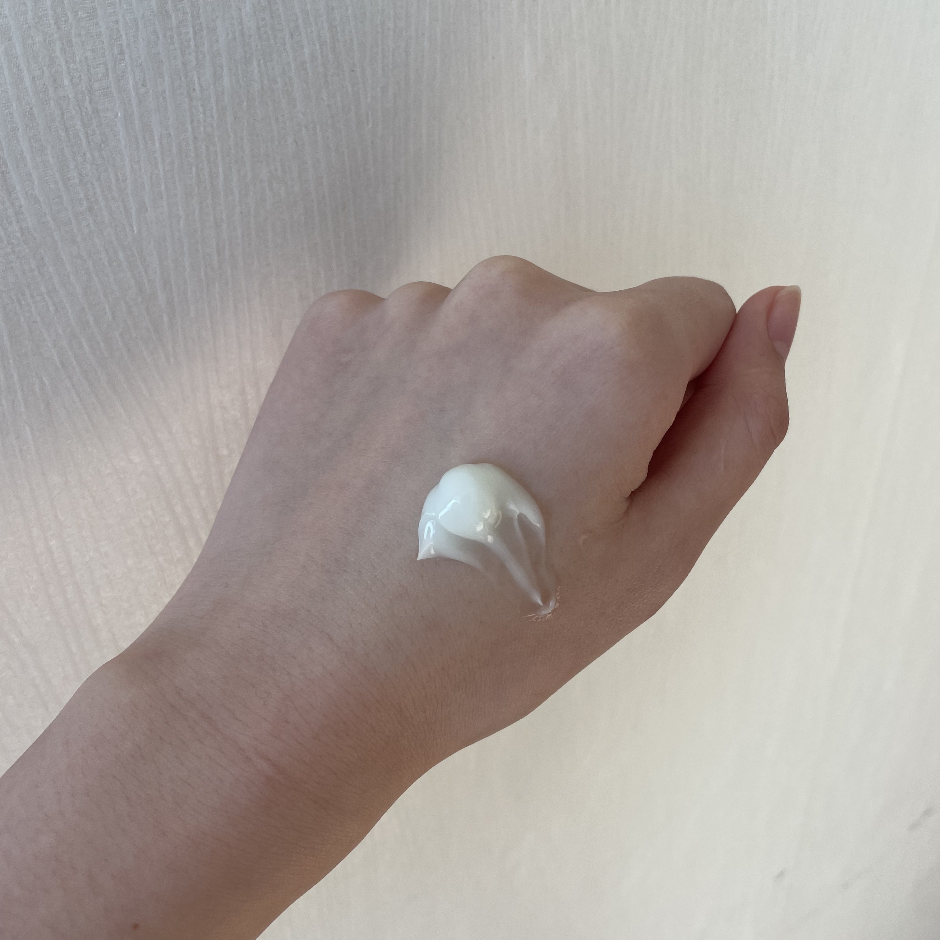 手にとってみた時のテクスチャーは既存のウォータースプラッシュサンクリームと比べると若干重めに感じましたが、肌に馴染ませると変わらず伸びが良いです! まず試しに手に塗ってみた時点で自然なツヤ感とトーンアップ効果に感動✨✨ファンデせずにこれだけでも肌を綺麗に見せてくれます! もちろん顔にも使ってみましたが、セラミド、ペプチド配合で保湿力もアップしたとのことでしたが、朝塗って夜まで乾燥が気になりませんでした! 皮膚科テスト完了、ヴィーガン認証もされているので、敏感肌でも安心して使えます。 そして、既存のタイプに比べてマイルドな香りになった気がします!私は前の香りも好きでしたが、こちらはさらにふんわりとやさしく香ります。