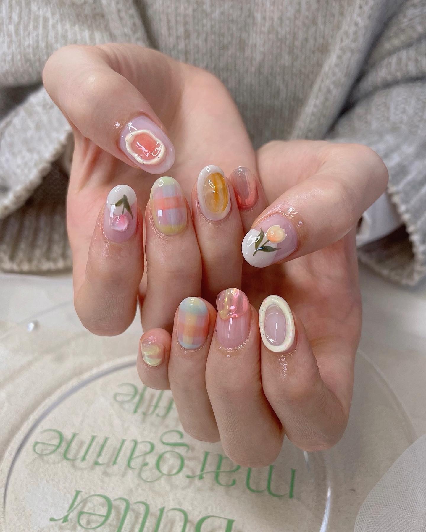 ゆるチェック♡♡人気です!!#チェックネイル#ネイルデザイン#春ネイル#ブルベ夏...