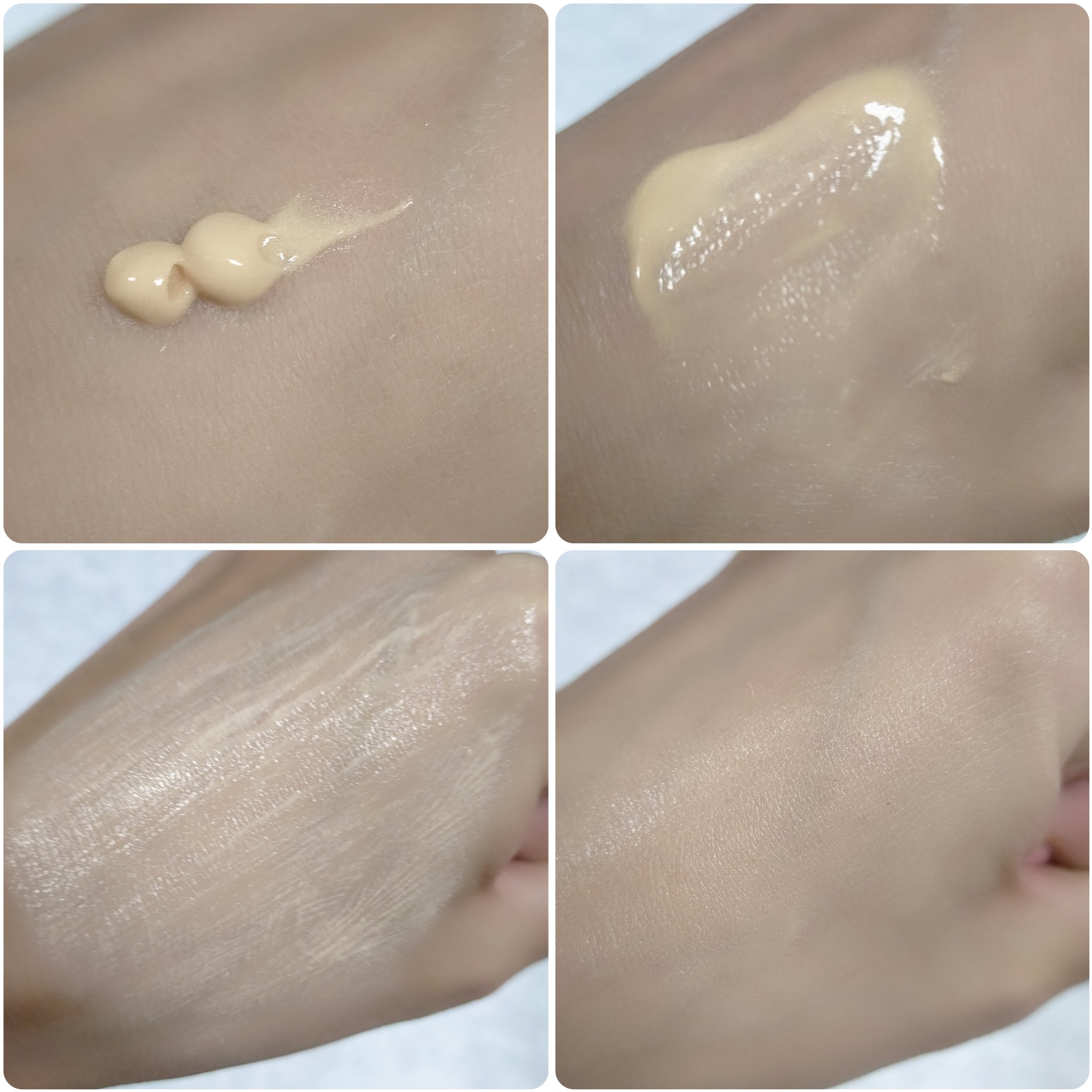 - 水、BG、エチルヘキサン酸セテアリル、酸化チタン、1,2-ヘキサンジオール、パンテノール、水添野菜油、ベヘニルアルコール、タルク、セテアリルアルコール、ステアリン酸、(ジメチコン/ビニルジメチコン)クロスポリマー、カルボマー、トロメタミン、アラントイン、キサンタンガム、エチルヘキシルグリセリン、ポリアクリレートクロスポリマー-6、パントラクトン、ヒマワリ種子油、グリセリン、t-ブタノール、加水分解コラーゲン、シロバナルーピン種子エキス、マコンブエキス、アロエベラ葉エキス、スミレ花エキス、ヤマノイモ根エキス、ウルムスダビディアナ根エキス、トコフェロール、EDTA-2Na、酸化鉄