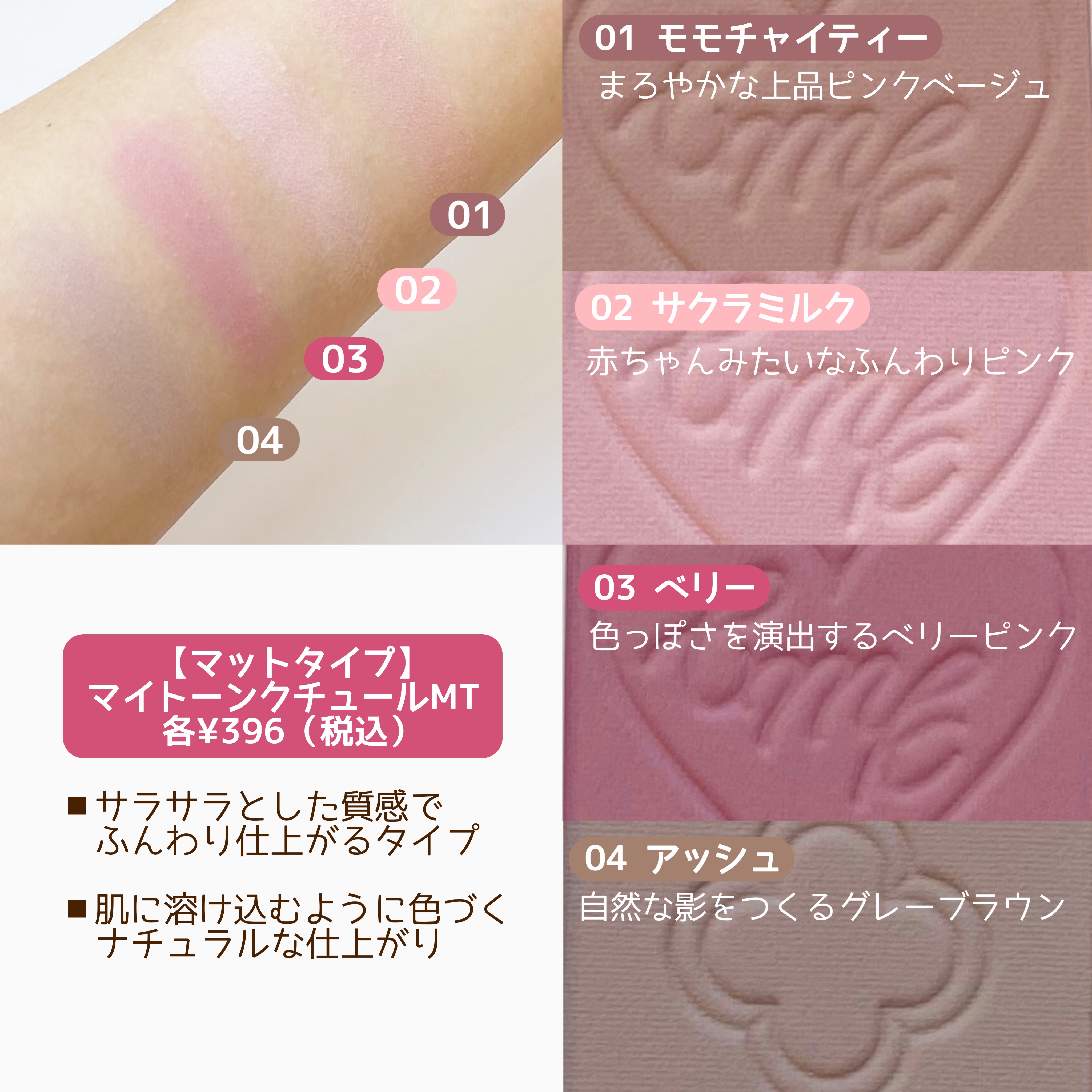 キャンメイクならではの 細かなこだわりが素敵すぎる…! 01 プリュムフラワーは ピンクベージュ系で イエベ春のわたしは一番使いやすかった🌸 持ち運びにも便利なサイズ感で チップもついているから 出先でメイク直しする時にも 役立ちそう!