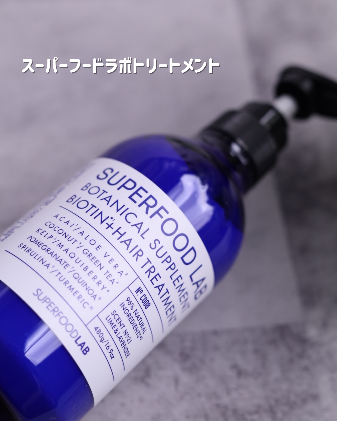スーパーフードといえば高い栄養価。 サプリメントエッセンスとして10種類も配合したヘアケア✨ ビタミンの一種であるビオチンが入ってるのも嬉しいポイント◎ ライムとラベンダーの香りはさわやかないい匂い🤍 頭皮までしっかりと洗えて髪の毛サラサラ〜な洗い心地だよ🫧