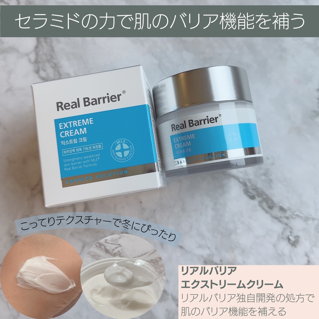 リアルバリアは韓国発の肌バリア専門のダーマコスメブランド🇰🇷肌のバリア機能の低下による様々な肌悩みにフォーカス、肌タイプや悩みに応じた商品ラインナップが展開されています🌿 エクストリームクリームはしっかり保湿をしたい方におすすめ☑︎肌の脂質成分であるセラミドをそのまま再現したトリプルセラミドを20,000ppm配合 エクストリームクリームマスクはしっかりしっとり保湿したいならこれ!!クリームマスクという表現がぴったりな乾燥肌さんに全力でおすすめしたい1枚🫧
