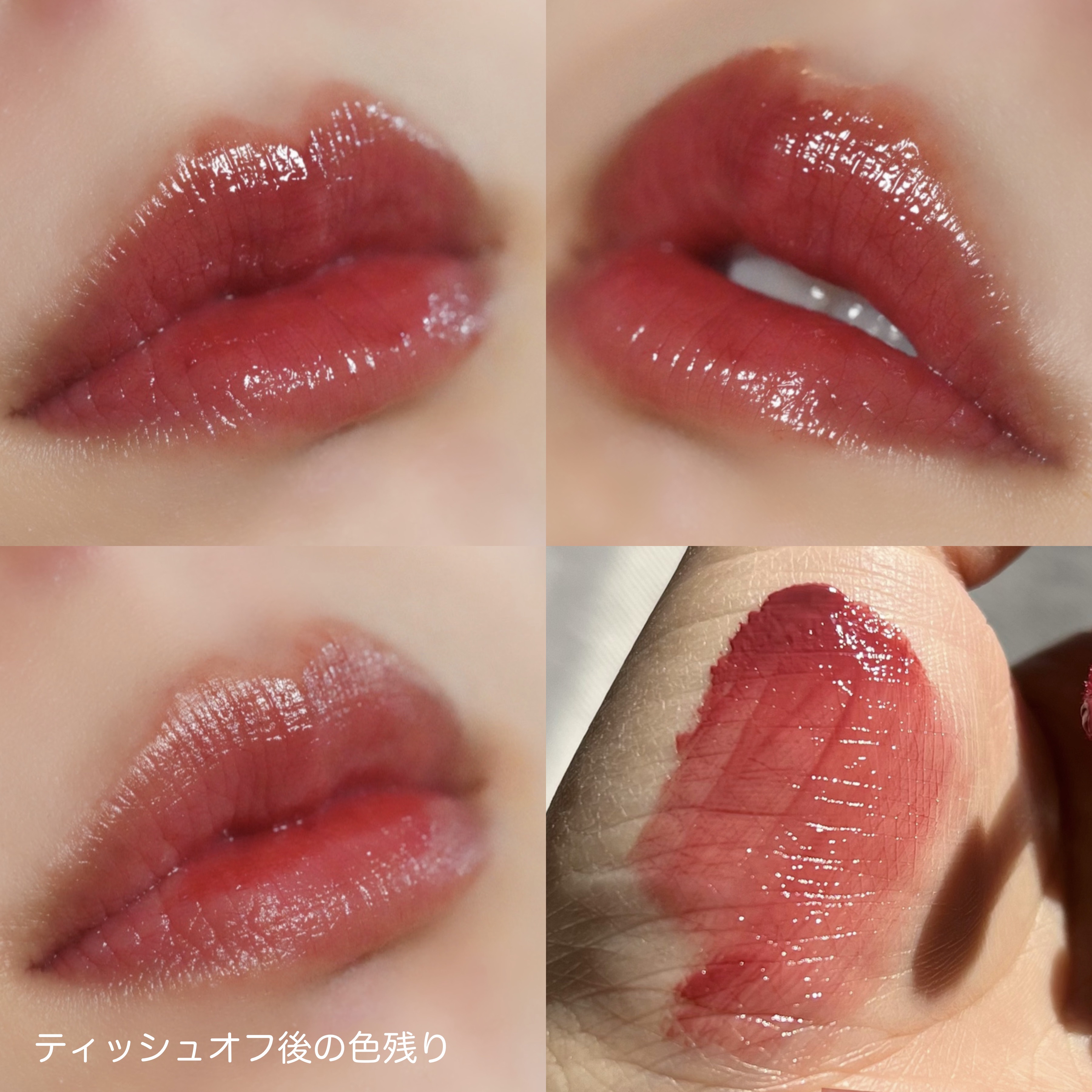 - 塗った瞬間はなめらか、時間とともにツヤが溢れる!もちぷる唇が完成するティントリップ ■透明感がありつつ、唇を包み込む艶オイル膜 時間とともにオイル膜が浮き上がり、唇をトップコートのようにコーティング。唇を包み込みながら、ボリュームのあるぷるぷるな唇へ。 ■塗り心地なめらかな水系ティント 水をベースにした水系処方。塗り心地なめらかなのにしっかりとした保湿感。 ■発色・色もちバツグン 軽い付け心地の高粘度オイルが密着感を高め、鮮やかなカラーが徐々に溶け込むように馴染みます。色もちも⻑時間キープします。 ■乾燥知らずのみずみずしい唇へ 保湿成分配合でずっとつづくみずみずしい唇になります。