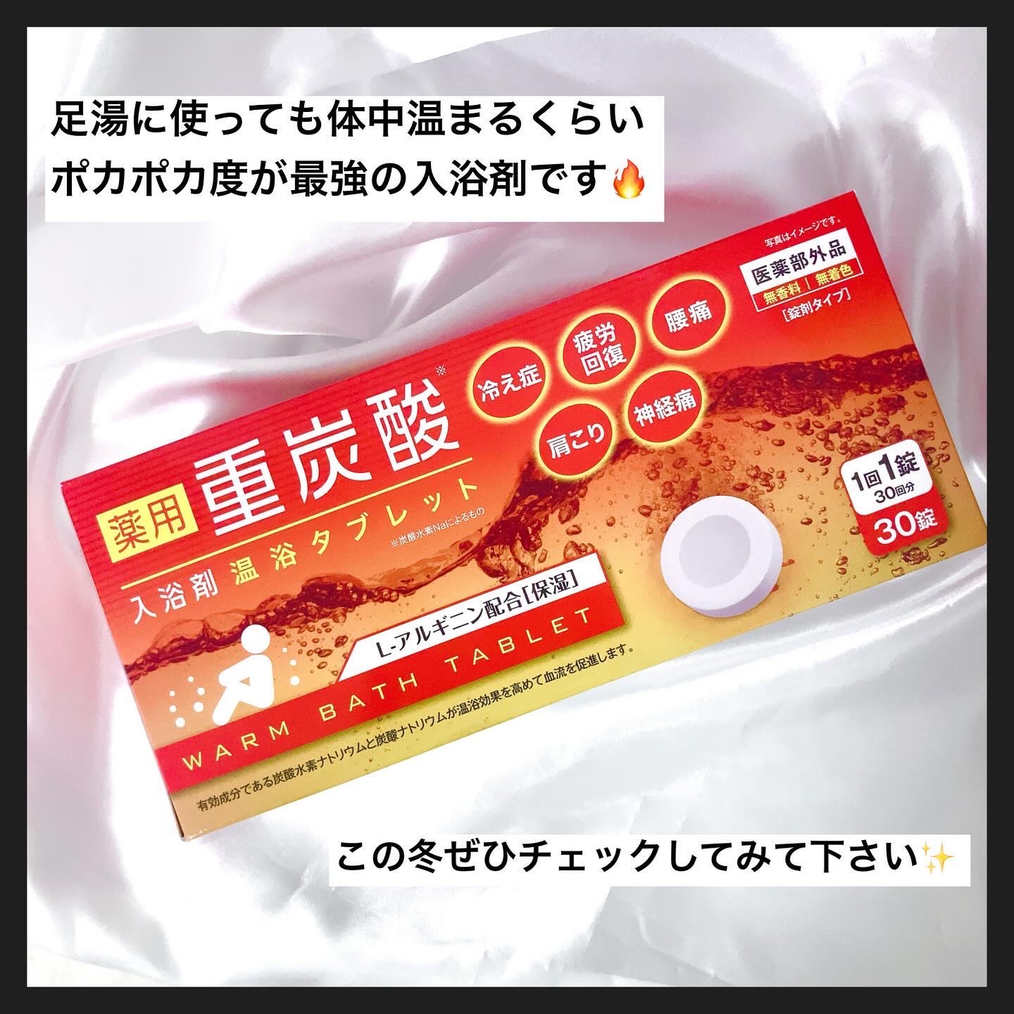 1日の疲れをホッと癒してくれる🛀 \薬用 重炭酸入浴剤 温浴タブレット/ 血流アップ!体温アップ! うれしい効果がいっぱいの重炭酸温浴が楽しめます🛀 保湿成分L-アルギニン配合で肌もしっとり◎ 赤ちゃんにもやさしい中性重炭酸だから家族みんなで使えるのもうれしいですね🌟