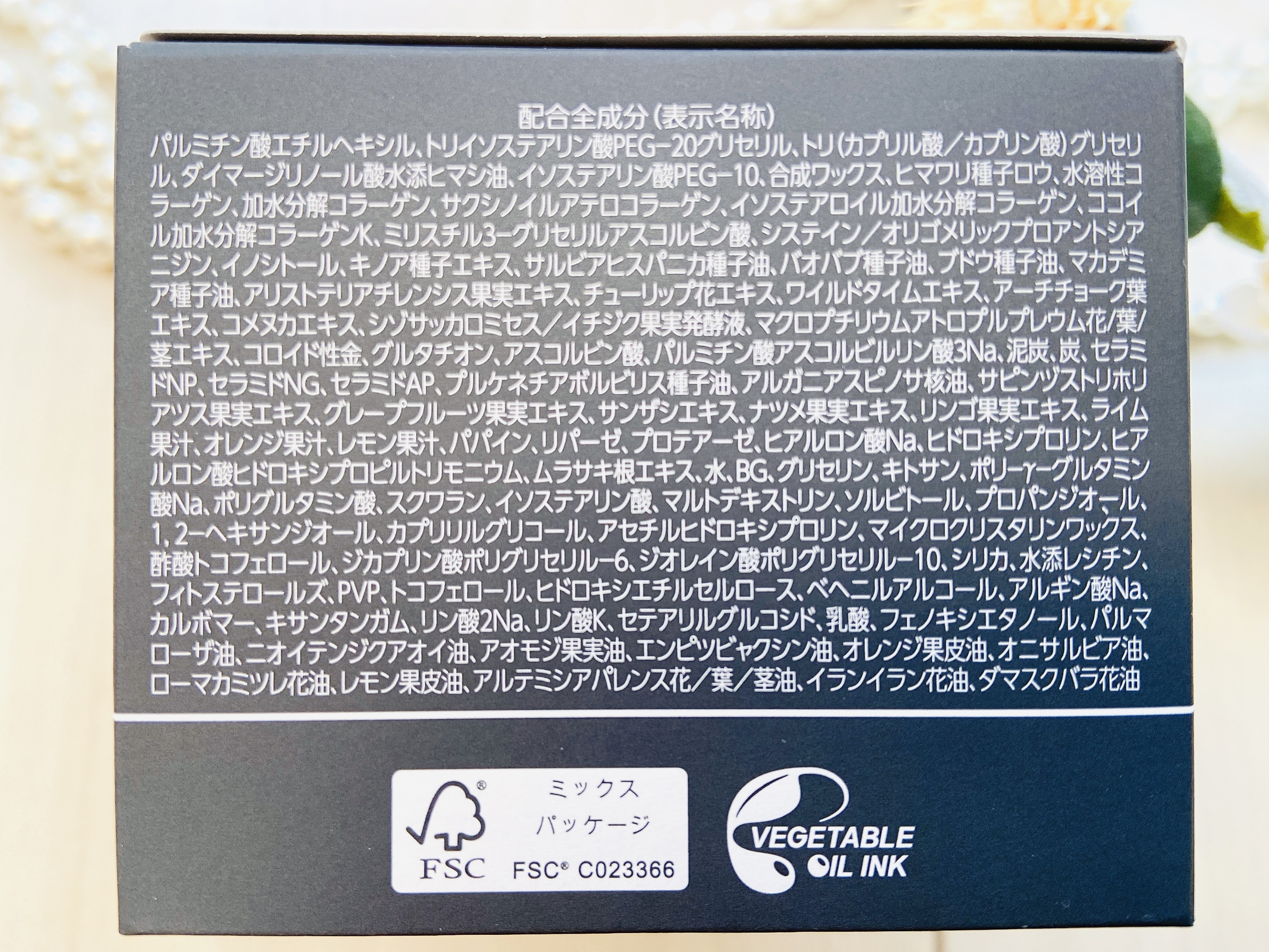 - <75g> パルミチン酸エチルヘキシル、トリイソステアリン酸PEG-20グリセリル、トリ(カプリル酸/カプリン酸)グリセリル、ダイマージリノール酸水添ヒマシ油、イソステアリン酸PEG-10、合成ワックス、ヒマワリ種子ロウ、水溶性コラーゲン、加水分解コラーゲン、サクシノイルアテロコラーゲン、イソステアロイル加水分解コラーゲン、ココイル加水分解コラーゲンK、ミリスチル3-グリセリルアスコルビン酸、システイン/オリゴメリックプロアントシアニジン、イノシトール、キノア種子エキス、サルビアヒスパニカ種子油、バオバブ種子油、ブドウ種子油、マカデミア種子油、アリストテリアチレンシス果実エキス、チューリップ花エキス、ワイルドタイムエキス、アーチチョーク葉エキス、コメヌカエキス、シゾサッカロミセス/イチジク果実発酵液、マクロプチリウムアトロプルプレウム花/葉/茎エキス、コロイド性金、グルタチオン、アスコルビン酸、パルミチン酸アスコルビルリン酸3Na、泥炭、炭、セラミドNP、セラミドNG、セラミドAP、プルケネチアボルビリス種子油、アルガニアスピノサ核油、サピンヅストリホリアツス果実エキス、グレープフルーツ果実エキス、サンザシエキス、ナツメ果実エキス、リンゴ果実エキス、ライム果汁、オレンジ果汁、レモン果汁、パパイン、リパーゼ、プロテアーゼ、ヒアルロン酸Na、ヒドロキシプロリン、ヒアルロン酸ヒドロキシプロピルトリモニウム、ムラサキ根エキス、水、BG、グリセリン、キトサン、ポリ-γ-グルタミン酸Na、ポリグルタミン酸、スクワラン、イソステアリン酸、マルトデキストリン、ソルビトール、プロパンジオール、1,2-ヘキサンジオール、カプリリルグリコール、アセチルヒドロキシプロリン、マイクロクリスタリンワックス、酢酸トコフェロール、ジカプリン酸ポリグリセリル-6、ジオレイン酸ポリグリセリル-10、シリカ、水添レシチン、フィトステロールズ、PVP、トコフェロールF、ヒドロキシエチルセルロース、ベヘニルアルコール、アルギン酸Na、カルボマー、キサンタンガム、リン酸2Na、リン酸K、セテアリルグルコシド、乳酸、フェノキシエタノール、パルマローザ油、ニオイテンジクアオイ油、アオモジ果実油、エンピツビャクシン油、オレンジ果皮油、オニサルビア油、ローマカミツレ花油、レモン果皮油、アルテミシアパレンス花/葉/茎油、イランイラン花油、ダマスクバラ花油 <クロミ 限定デザイン(75g)> パルミチン酸エチルヘキシル、トリイソステアリン酸PEG-20グリセリル、トリ(カプリル酸/カプリン酸)グリセリル、ダイマージリノール酸水添ヒマシ油、イソステアリン酸PEG-10、合成ワックス、ヒマワリ種子ロウ、水溶性コラーゲン、加水分解コラーゲン、サクシノイルアテロコラーゲン、イソステアロイル加水分解コラーゲン、ココイル加水分解コラーゲンK、ミリスチル3-グリセリルアスコルビン酸、システイン/オリゴメリックプロアントシアニジン、イノシトール、キノア種子エキス、サルビアヒスパニカ種子油、バオバブ種子油、ブドウ種子油、マカデミア種子油、アリストテリアチレンシス果実エキス、チューリップ花エキス、ワイルドタイムエキス、アーチチョーク葉エキス、コメヌカエキス、シゾサッカロミセス/イチジク果実発酵液、マクロプチリウムアトロプルプレウム花/葉/茎エキス、コロイド性金、グルタチオン、アスコルビン酸、パルミチン酸アスコルビルリン酸3Na、泥炭、炭、セラミドNP、セラミドNG、セラミドAP、プルケネチアボルビリス種子油、アルガニアスピノサ核油、サピンヅストリホリアツス果実エキス、グレープフルーツ果実エキス、サンザシエキス、ナツメ果実エキス、リンゴ果実エキス、ライム果汁、オレンジ果汁、レモン果汁、パパイン、リパーゼ、プロテアーゼ、ヒアルロン酸Na、ヒドロキシプロリン、ヒアルロン酸ヒドロキシプロピルトリモニウム、ムラサキ根エキス、水、BG、グリセリン、キトサン、ポリ-γ-グルタミン酸Na、ポリグルタミン酸、スクワラン、イソステアリン酸、マルトデキストリン、ソルビトール、プロパンジオール、1,2-ヘキサンジオール、カプリリルグリコール、アセチルヒドロキシプロリン、マイクロクリスタリンワックス、酢酸トコフェロール、ジカプリン酸ポリグリセリル-6、ジオレイン酸ポリグリセリル-10、シリカ、水添レシチン、フィトステロールズ、PVP、トコフェロールF、ヒドロキシエチルセルロース、ベヘニルアルコール、アルギン酸Na、カルボマー、キサンタンガム、リン酸2Na、リン酸K、セテアリルグルコシド、乳酸、フェノキシエタノール、パルマローザ油、ニオイテンジクアオイ油、アオモジ果実油、エンピツビャクシン油、オレンジ果皮油、オニサルビア油、ローマカミツレ花油、レモン果皮油、アルテミシアパレンス花/葉/茎油、イランイラン花油、ダマスクバラ花油 <75g ちいかわ 限定デザイン> パルミチン酸エチルヘキシル、トリイソステアリン酸PEG-20グリ