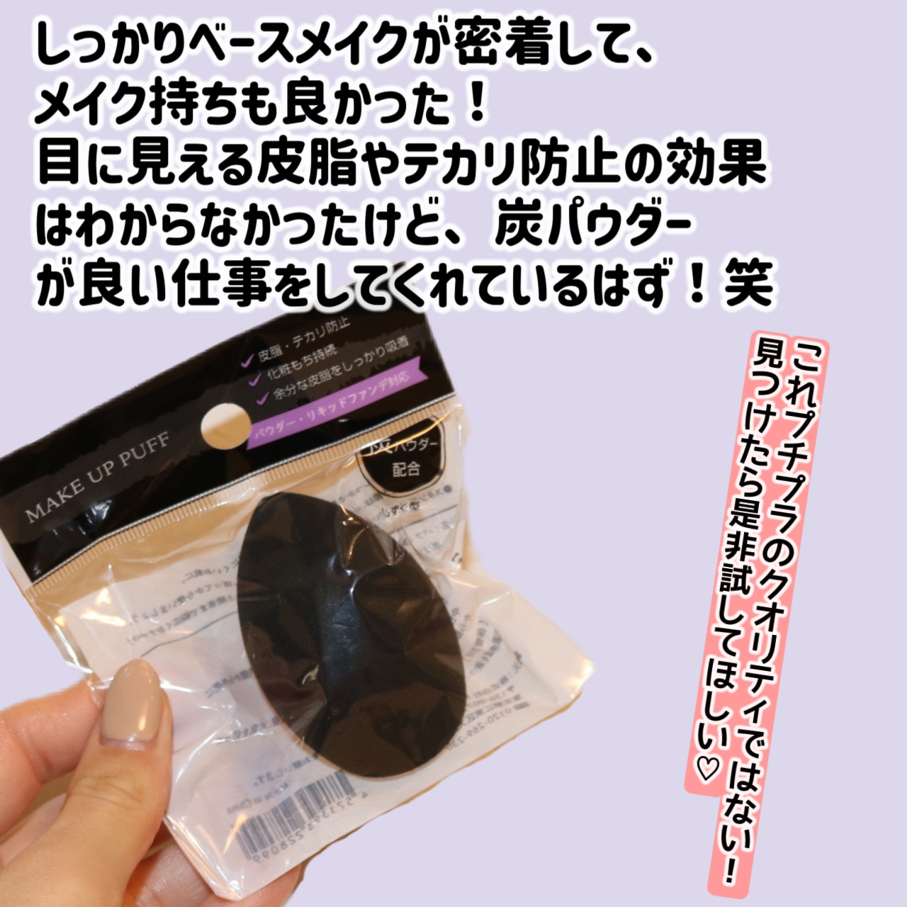 皮脂・テカリ防止に◎炭パウダー配合パフDAISOパフ炭入り・しずく型DAISOでお試しで買ってみました。こちらのパフは炭入りらしく、⭐︎皮脂・テカリ防止⭐︎余分な皮脂をしっかり吸着してくれるらしいです!まず、パフの水の含み具合が良くて、濡らし...