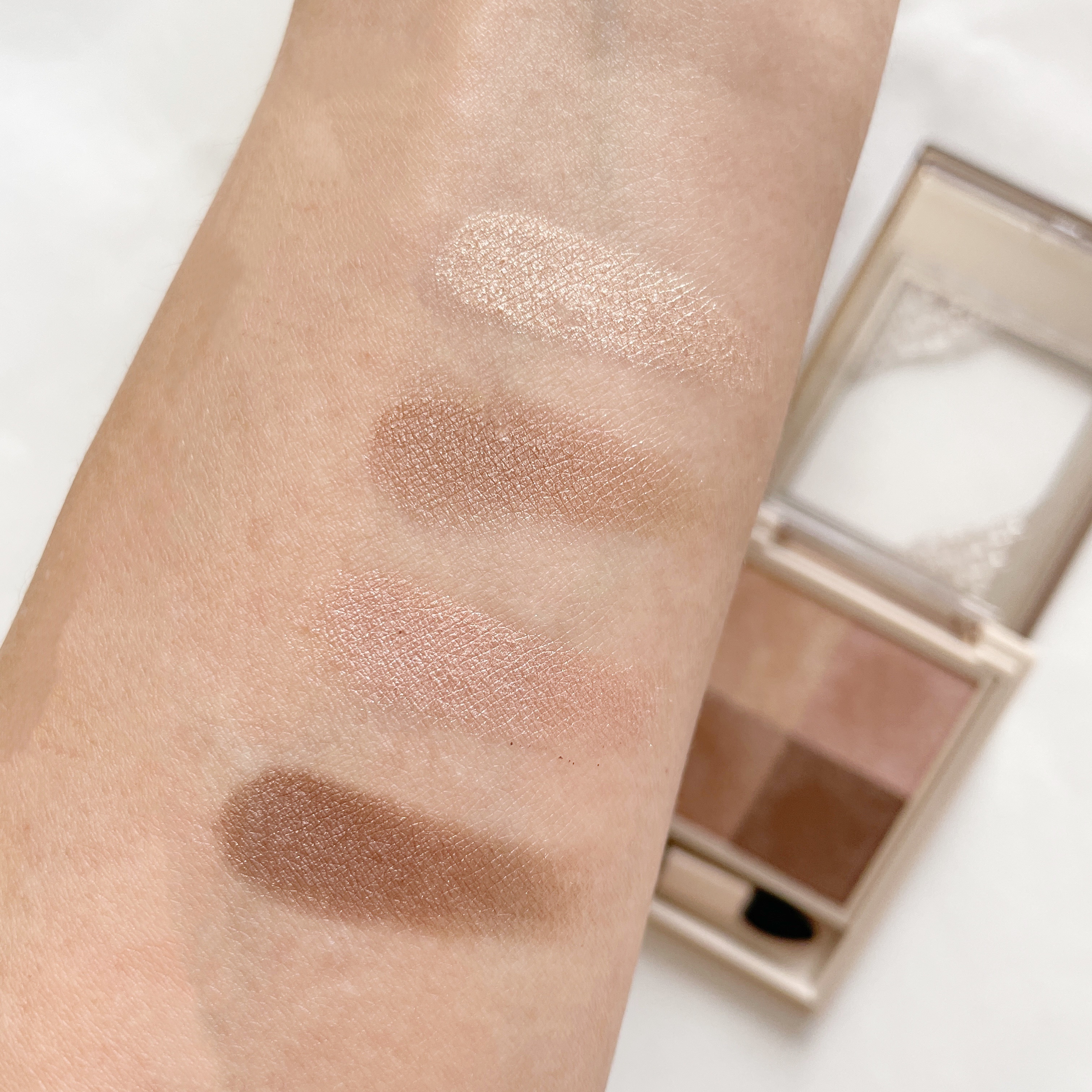 - ● しっとりほぐれるようなタッチで密着し、上品なツヤめきと透け感発色で目もとを彩る 4 色セットアイカラーです。 やさしいトーンの色味と繊細な輝きで、どこか儚げでアンニュイな印象に導きます。 ● レフ板のように光を美しく反射させるライトリフレクションパウダーを配合。 どの角度から見ても、繊細な輝きと濡れたようなツヤを演出します。 ● 透け感があり、軽いタッチでのび広がるクリアパウダーを配合。 色味を重ねても濁りのない透け感発色を叶えます。 ● とてもキメ細かなパウダーに厳選したオイルを組み合わせることで、しっとりなめらかなほぐれ感を実現。 薄膜にのび広がり、まぶたへ溶け込むように密着します。 ● スルスルとした軽い感触のオイルを配合。摩擦抵抗を減らすことで、まばたきや表情の変化によるヨレを防ぎます。 汗や皮脂にもくすみにくいため、時間が経ってもつけたての美しい発色が持続します。 ● まぶたに明るさをあたえ、後から重ねるアイカラーを美しく発色させる「スキンブライトカラー」(A)をセット。 光を味方につけてまぶたのくすみを飛ばし、明るくツヤめく目もとを叶えます。 ● 色ごとに仕切りがないため、1 色ずつはもちろん、パレット内で色を混ぜて塗布することもできます。 ● 美容液成分配合。乾燥しやすい目もとのうるおいをまもります。 ● 無香料
