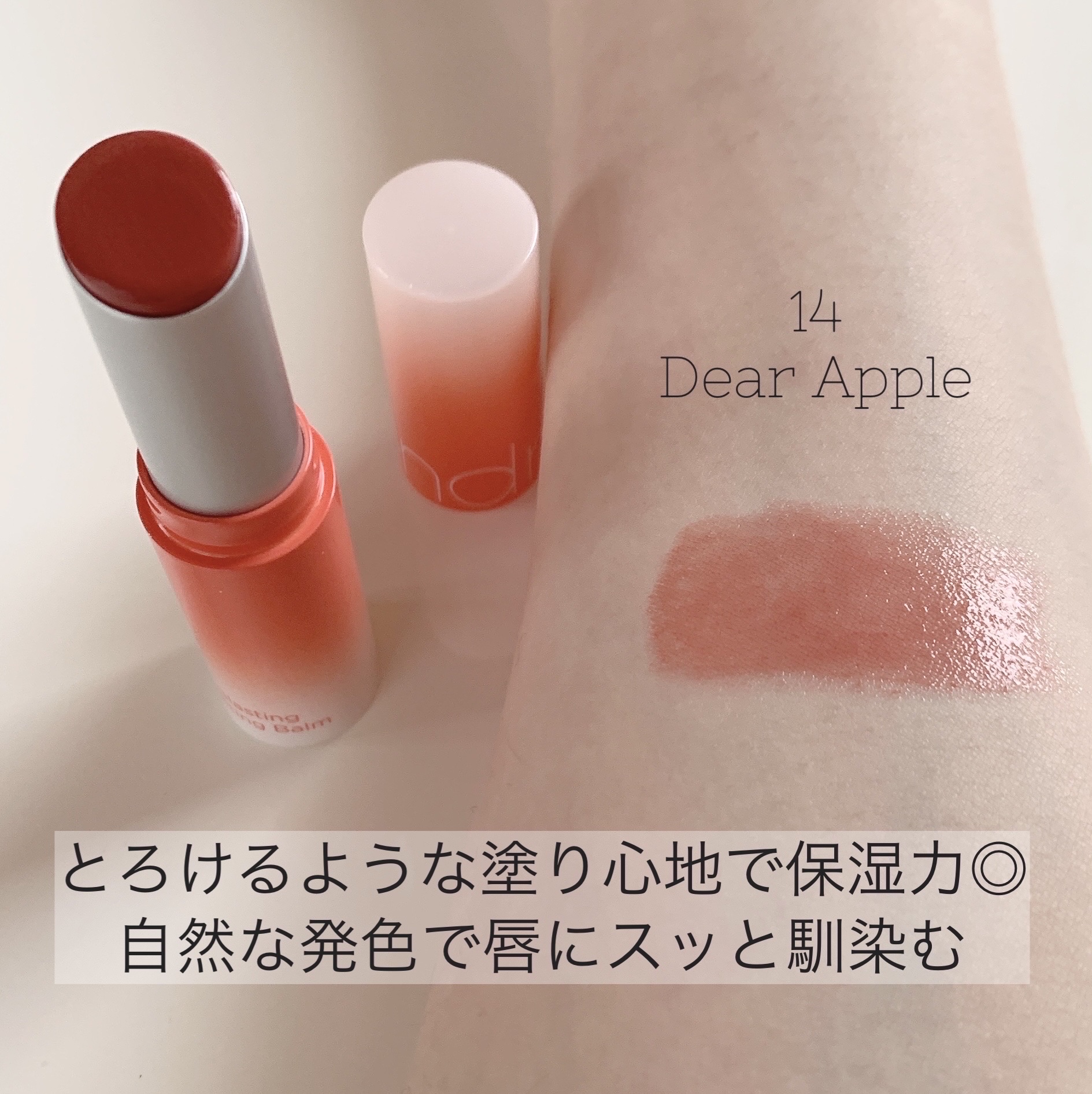 - もちっとした水膜で弾けそうなツヤリップ 1.軽い塗り心地のなめらかで透明な水爆弾ツヤ 2.塗った瞬間から唇を鮮やかに彩る多彩なカラーバーム 3.植物性保湿オイルでしっとりもっちり保湿バーム