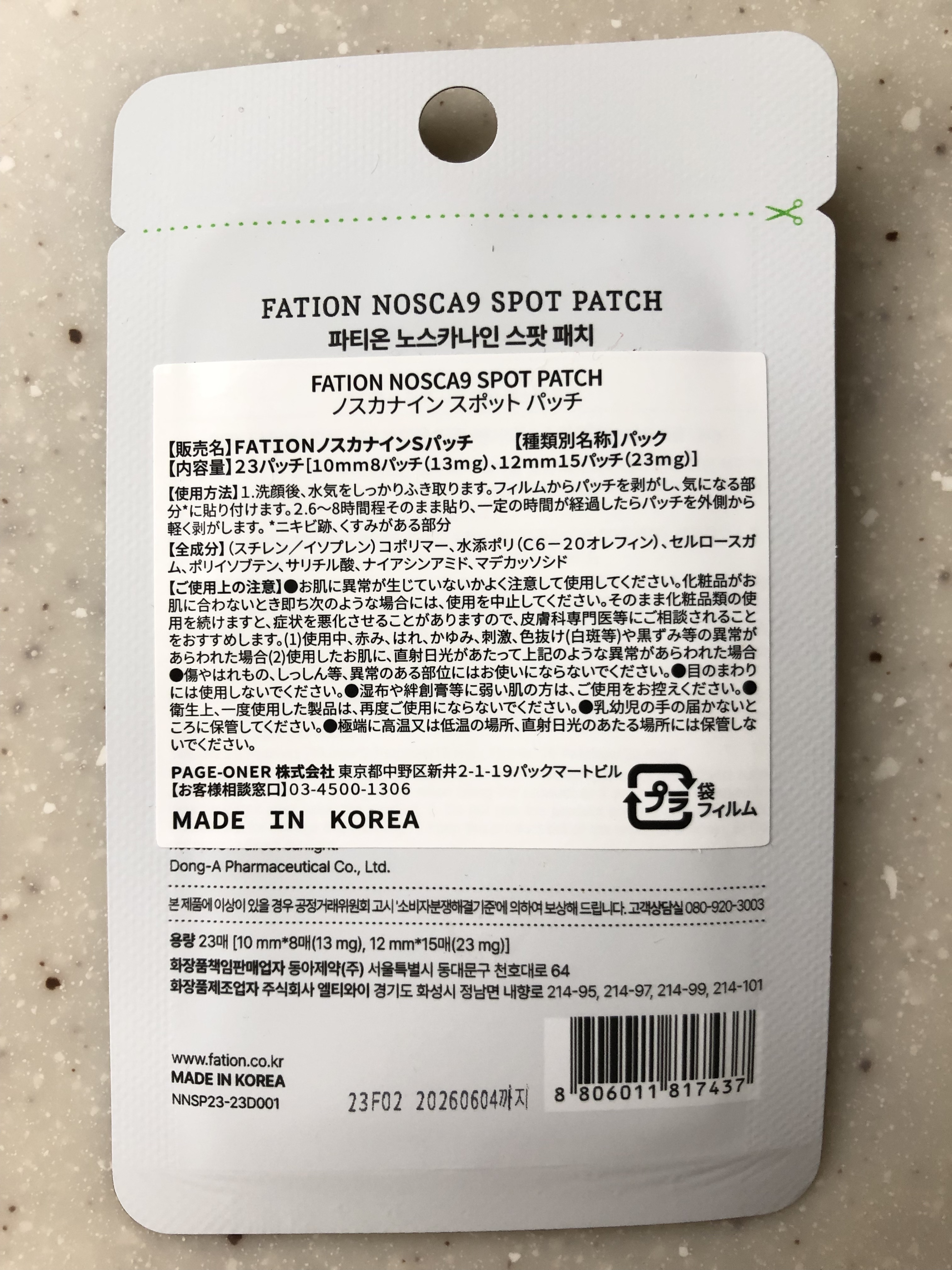 ☑FATIONノスカナインスポットパッチノスカナイントラブルセラム購入時のおまけトラブルの段階別3つの有効成分配合!BHA(サリチル酸)0.2%配合、マデカソサイド、ナイアシンアミド配合で初期からアフターケアまでコレひとつ厚みが程よい薄さで密...