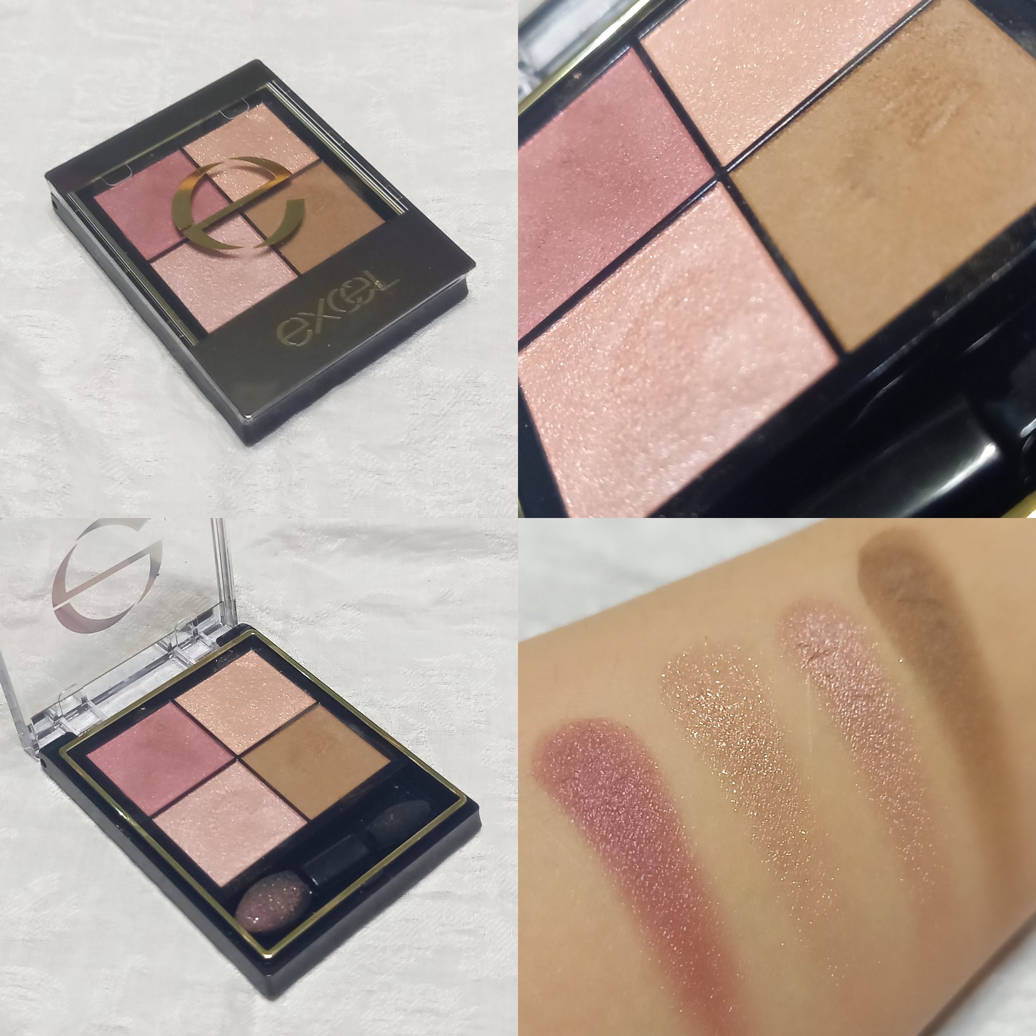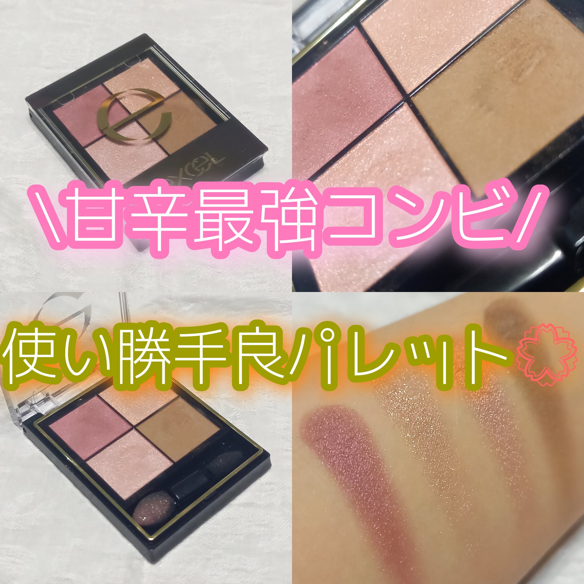 - 1.重ねてもくすまないクリアな発色。ナチュラルに溶け合う絶妙4カラー。 ツヤタイプ(左上・左下カラー):アイホール全体にぼかしたり、目尻へのポイント使いも。 ラメタイプ(右上カラー):アイホール中心や下まぶたにきらめきのアクセント。 マットタイプ(右下カラー):単色で陰影を付けたり、ツヤタイプと重ねてニュアンスをプラス。 2.うっとりするほどリッチな質感で粉飛びしないのに、軽いタッチで伸びて重ねやすいテクスチャー。 3.スクワラン(保湿)配合で目元の乾燥を防ぎます。 [PERFORMANCE] 色と質感の重ね着を楽しむ、ファッション感覚アイシャドウパレット [DESIGN] ・まぶたにひっかからない、なめらかな上質チップ ・薄型コンパクトだからポーチの中でかさばらない [QUALITY] 1.重ねてもくすまないクリアな発色 ナチュラルに溶け合う絶妙4カラー 2.パールの重ね技でまぶたに極上のツヤ感 微細多色 カラーパール 銀コーティング ガラスパール* excel GOLD-MIX処方(金パール配合)* (*右上のシャイニーカラーのみ) 3.うっとりするほどリッチな質感で粉飛び知らず!なのに、軽いタッチで伸びて重ねやすい 4.スクワラン(保湿)配合で目元の乾燥を防ぐ