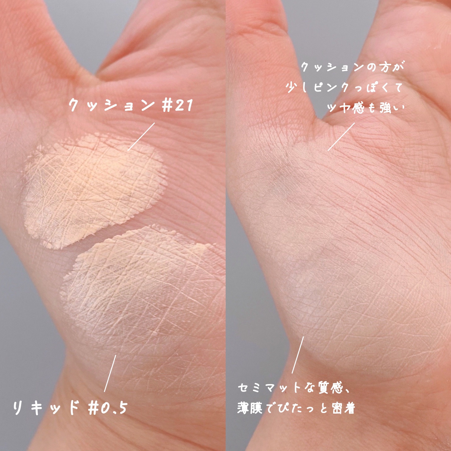 クッション部分が固めで少量ずつ塗れるのが◎ 薄く伸ばしてもしっかりカバー力がありますꐕ 自然なツヤ感でやりすぎ感が出ないのも好きなポイント 塗る量が少ないので崩れにくいし、マスクにも着きにくいです🌿