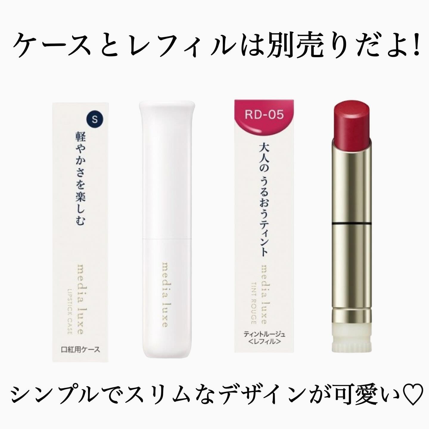 ♥️medialuxe♥️ティントルージュ♥️口紅用ケースS♥️RD-02ティントとケースは別売りで😌🤍💄レフィルで何度も詰め替えができてエコ😉透明感のある赤で、顔の印象が明るくなります🌞優しい血色感とうるおいが続きます🎶カラーは他にも種類が...