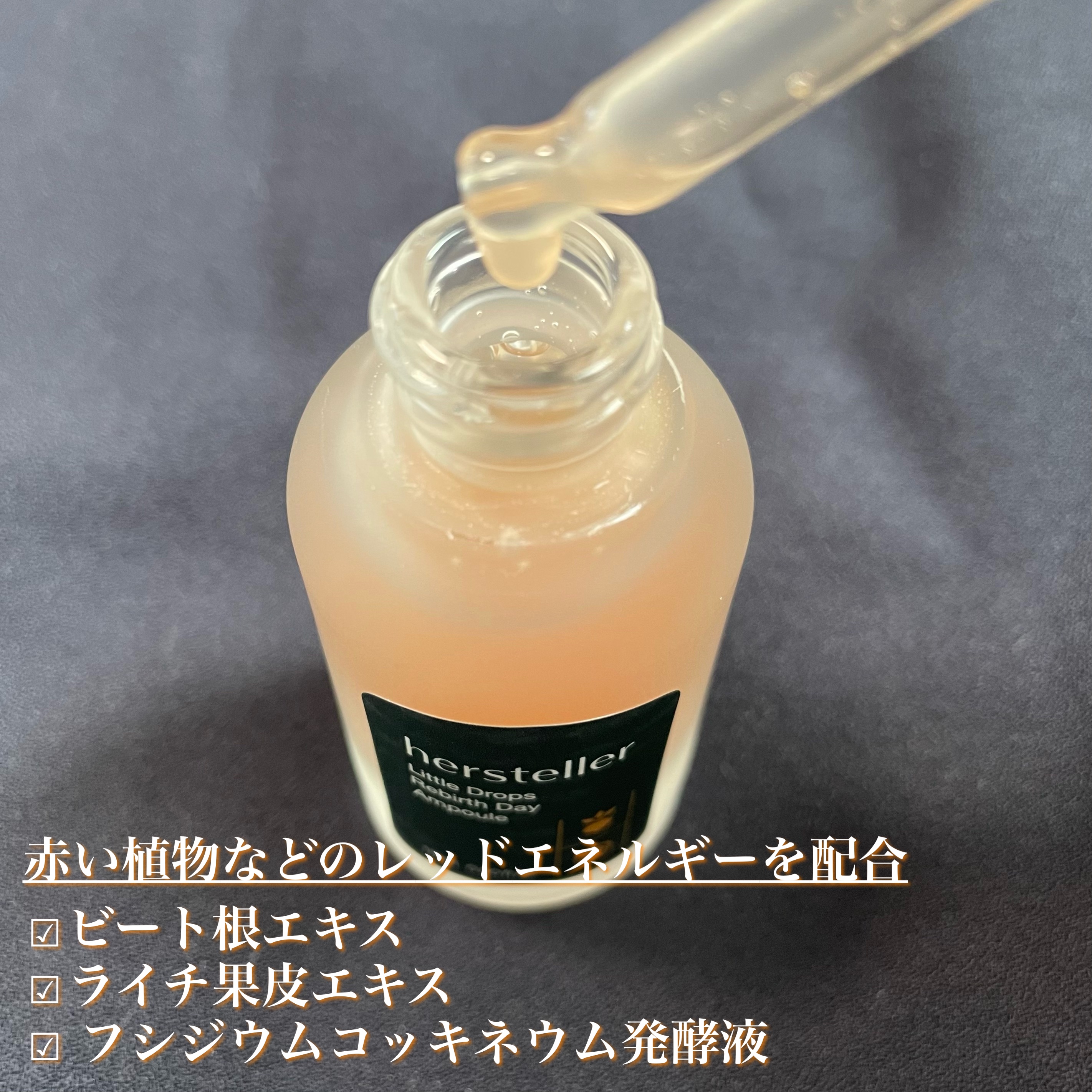 - もちっとした高濃縮美容液が肌のキメを整え、ハリも同時にケアするエイジングケア*1美容液。ハリをケアするビート根エキス*2配合及びリッチから抽出した独自成分Litchiderm*2、土から見つけたビーガンマイクロバイオームFusibiome*2、美容保湿成分の肌馴染みを高める独自技術FLEX-someが肌を滑らかにケアし、肌のキメを角質層隅々まで隙間なくしっとりと満たし、健やかな肌を保ちます。 *1年齢に応じたお手入れ *2保湿成分