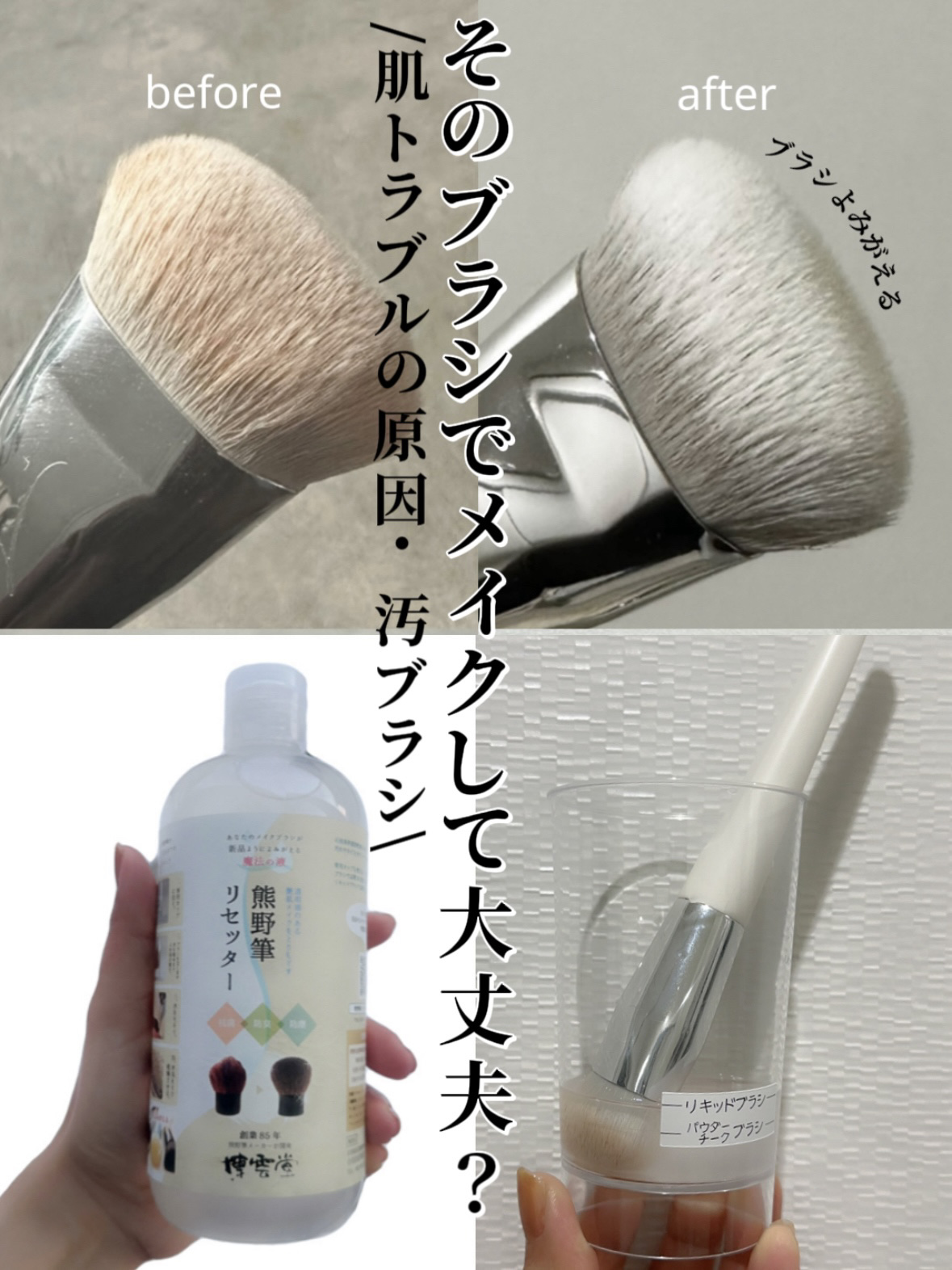 サボっててごめんなさい🥲❕ずっとやらなきゃって思ってたメイクブラシの汚れあの有名な熊野筆からでてるリセッター使ったら超簡単に汚れピカピカになってふわっふわのブラシ蘇って感動🥺🩷クリーナー、カップ、タオル、ブラシスタンド付きで5,399円とお得...