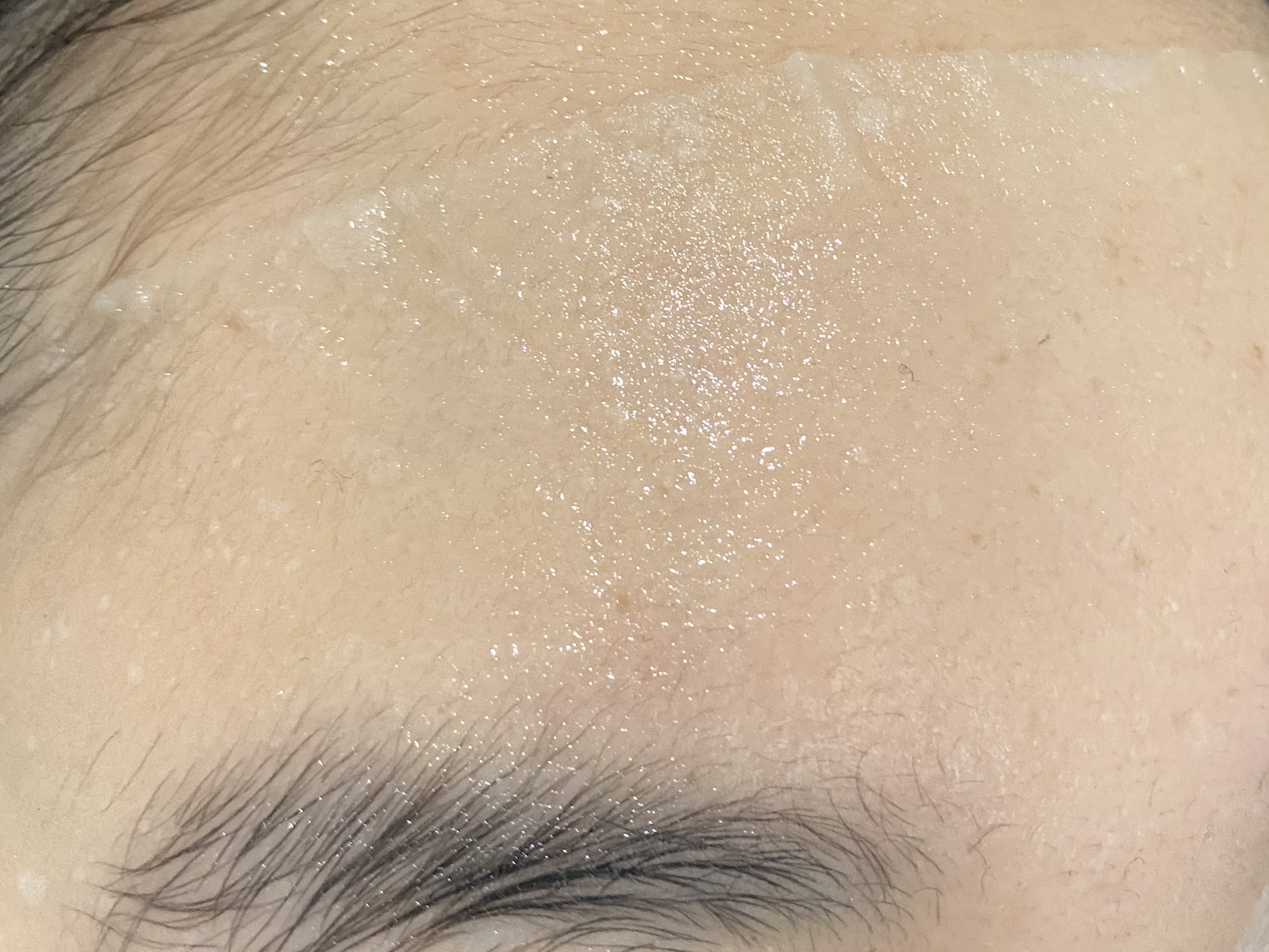 トーンアップするか否かの確認が漏れていて、無色透明のつもりで購入。開封時にパッケージを見てトーンアップやん!?!?となりました。しかしトーンアップと言っても艶で明るく見える程度の仕上がりで好みでした。 無色透明の方がベースメイク前に仕込むのに使いやすく、そのまま首やボディも塗れちゃうので手軽なんですよね。 塗りたては少しべたつくものの、時間が経つとベタつきは感じずしっとりとした触り心地に。
