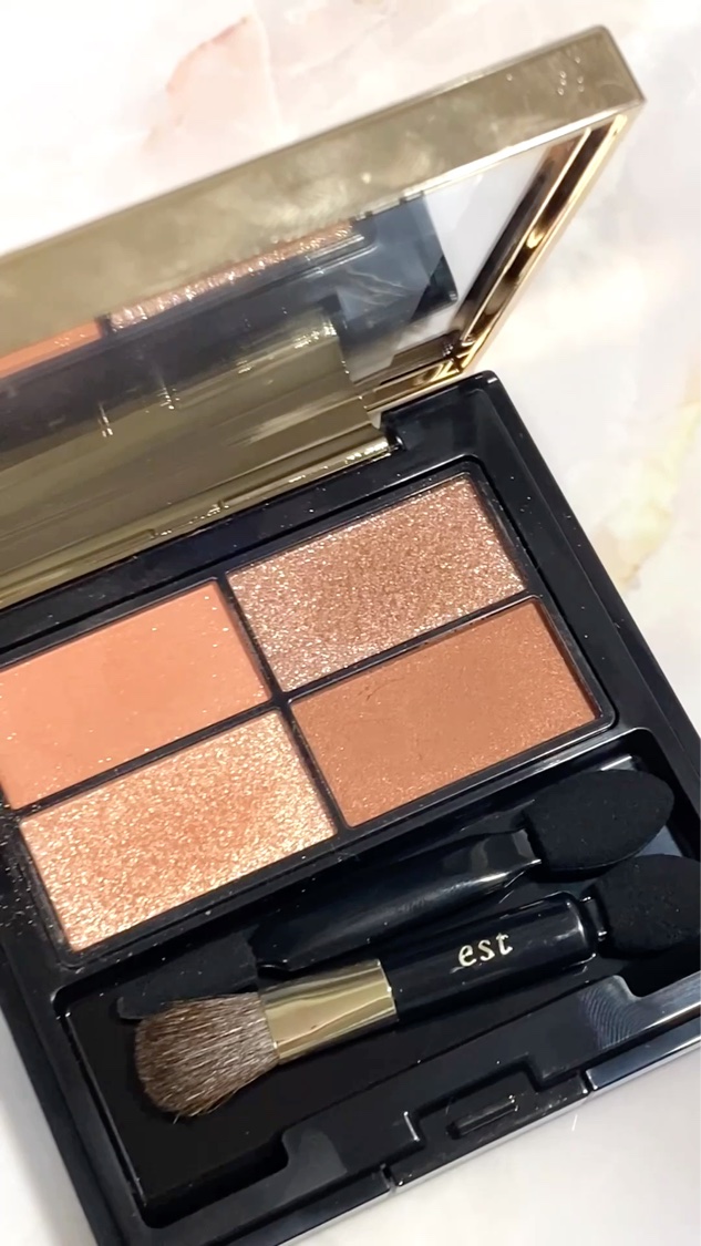 今年1番買ってよかったアイシャドウかもしれないです🩷🤎 ベースカラーの繊細なピンクパールがマットなキャメルから透けて、目元に透明感が出ます 仕上げのキラキララメをのせたら立体感がアップして、より華やかさがでます◎ ラメ飛びがわりとあります😣 アイシャドウベースを使うと気にならなくなるで使用をおすすめします◎
