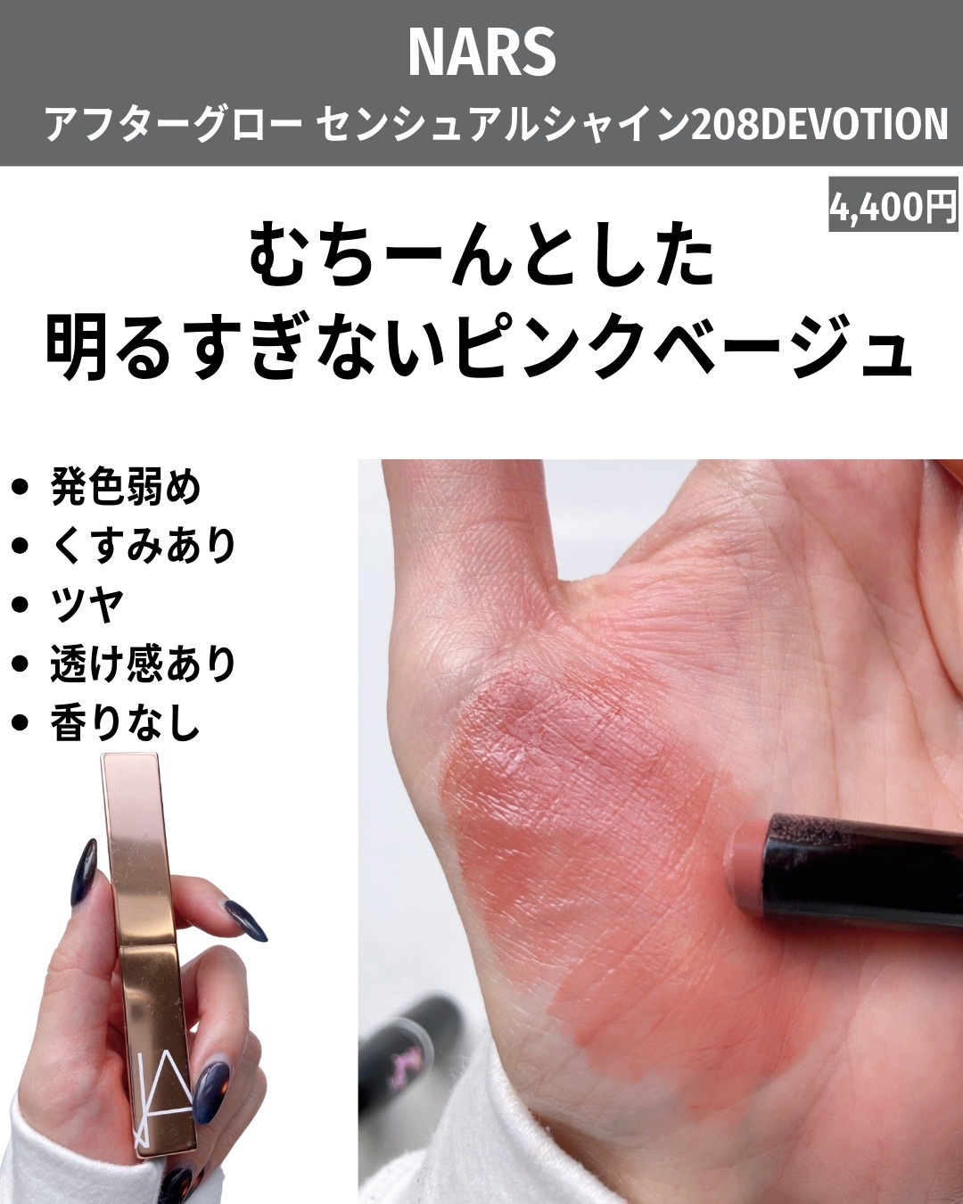 | 口紅・グロス・リップライナーランキング第44位 | とてもシアーな発色なので、超ナチュラルにも、 グラデーションも、がっつり色を出すのも可愛いです | 詳細を見る | |