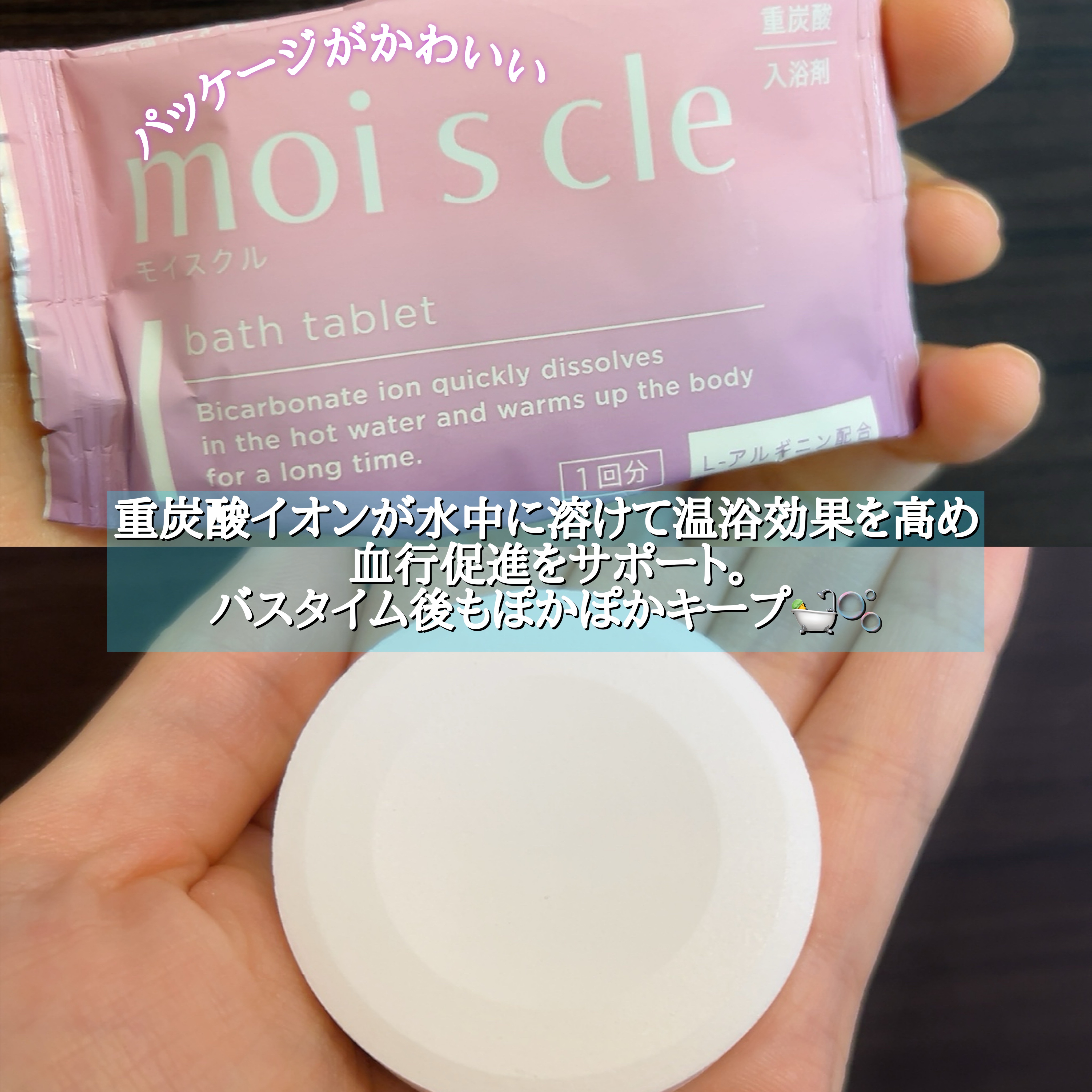アイリスオーヤマmoiscle(モイスクル)4錠入り878円(税込)3つのポイント☝🏻⸒⸒︎︎︎︎︎︎☑︎保湿成分Lーアルギニン配合でうるおいバスタイム♪︎︎︎︎︎︎☑︎話題の温活に着目。血行促進をサポート、冷え性に日々お悩みがある方へ!︎︎...