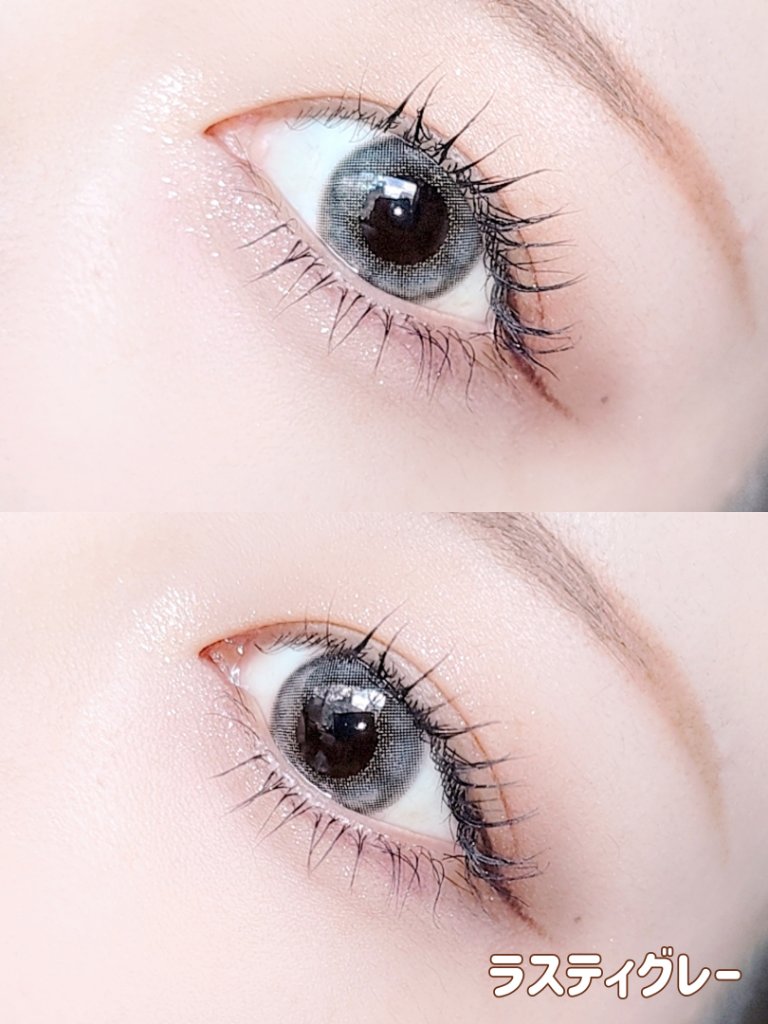 酸素を通しやすいシリコーンレンズ✨️ 馴染みのいいグレージュカラーで大きめな盛れるサイズ! フチもあるからくりっと立体的な瞳に👀🩵 盛れるフチありデザインが好きな方・シリコーン素材のレンズを使いたい方におすすめですよ🪄
