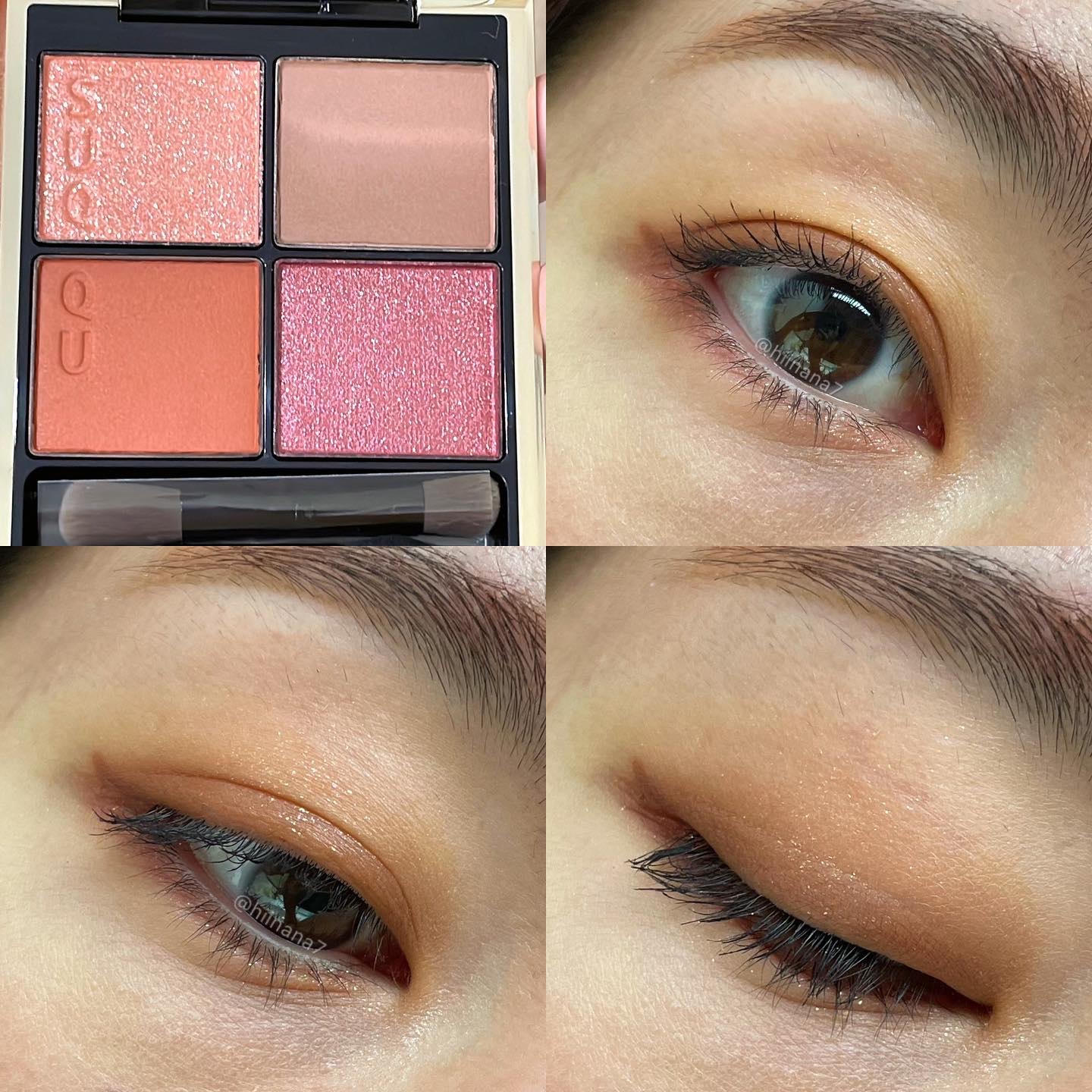 SUQQUは裏切らない‼️📣 ラメがキランキランなのに上品で、 マットブラウンは使いやすくてもう言う事ない💁♀️ 右上のブルーは目頭のくぼみと 目頭側に虹をかけるように入れました🌈 イエベでも使える青ラメ最高🥰