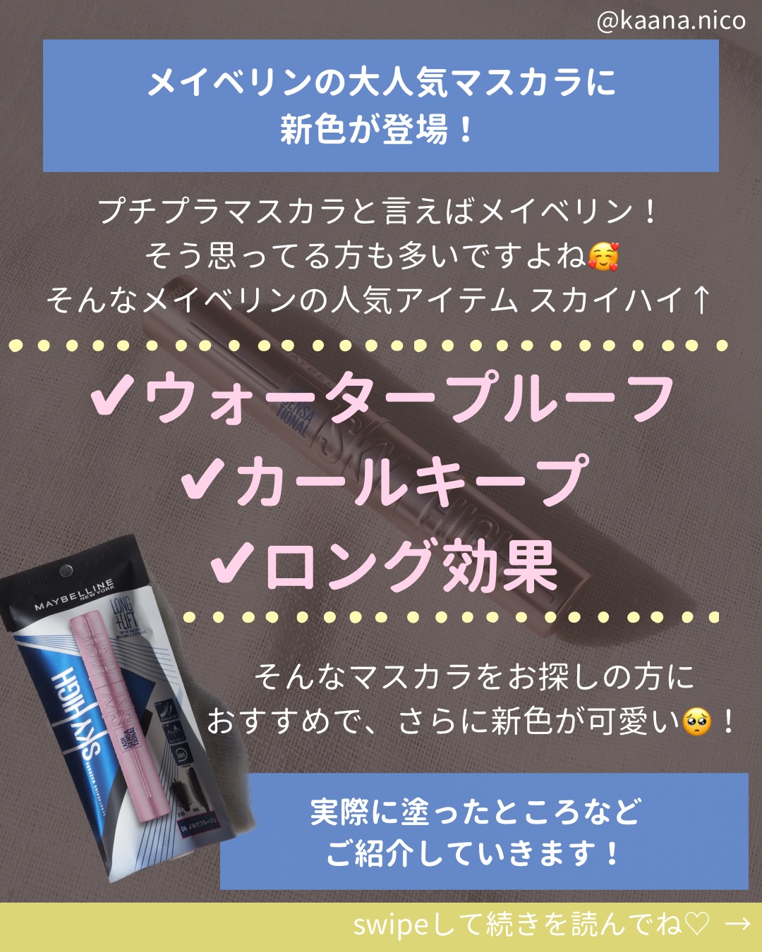 「スカイハイマスカラ」を試させてもらいました✨Point🩷メイベリンの大人気マスカラスカイハイから新色ブラウン登場!Point🩷🩷存在感のあるぱっちりロングまつ毛になれる!Point🩷🩷🩷ピンクみのあるブラウンだから、愛され印象を演出してくれ...