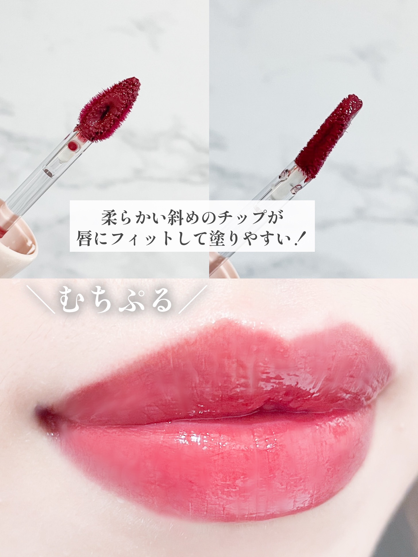 - 塗った瞬間はなめらか、時間とともにツヤが溢れる!もちぷる唇が完成するティントリップ ■透明感がありつつ、唇を包み込む艶オイル膜 時間とともにオイル膜が浮き上がり、唇をトップコートのようにコーティング。唇を包み込みながら、ボリュームのあるぷるぷるな唇へ。 ■塗り心地なめらかな水系ティント 水をベースにした水系処方。塗り心地なめらかなのにしっかりとした保湿感。 ■発色・色もちバツグン 軽い付け心地の高粘度オイルが密着感を高め、鮮やかなカラーが徐々に溶け込むように馴染みます。色もちも⻑時間キープします。 ■乾燥知らずのみずみずしい唇へ 保湿成分配合でずっとつづくみずみずしい唇になります。