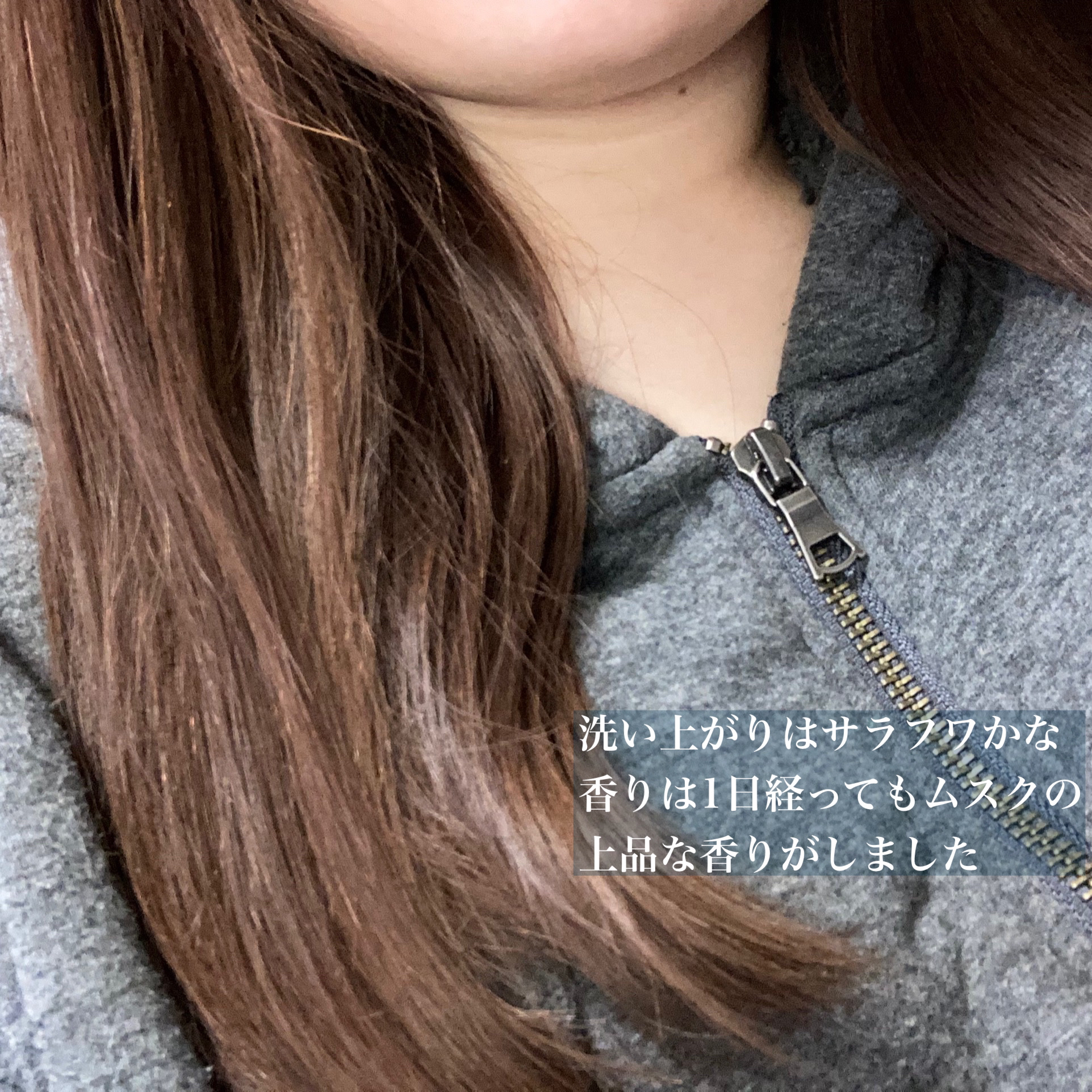 香水のようないい香り 加水分解ケラチン、乳タンパクエキス、バオバブ種子エキス(すべて保湿成分) ふんわり甘いムスクの香り シャンプー ゆるめの乳液テクスチャー シルクみたいな、ツヤッした見た目 同じ香りのボディソープも気になるー!!