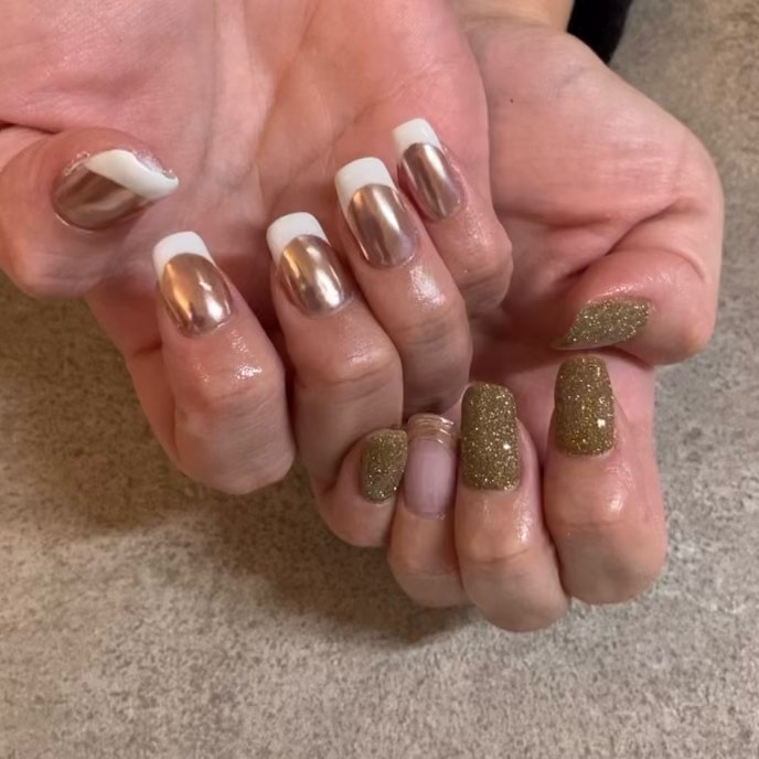 冬っぽミラーネイル❄️暖かみのあるカラーのミラーにブルーグリーンのグラデをかけて柔らかい雰囲気に🤎...