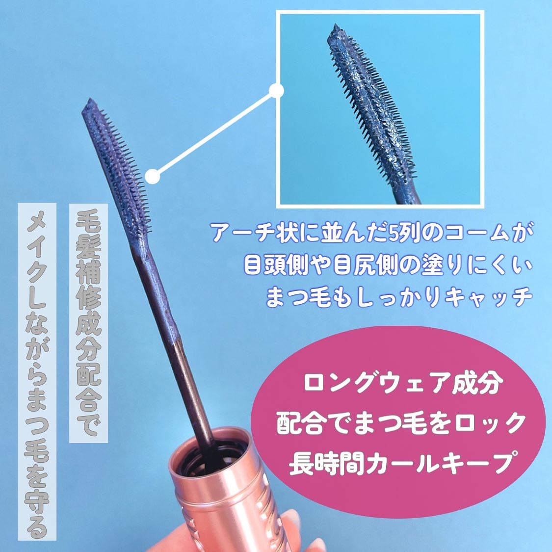 - 根元からとかしてキレイなぱっちりロングに(*1)! コームがブラシのように5列のアーチ状に並んで、とかしながら上げて伸ばせる(*1)! まつ毛リフト、1日中(*2)キープ! *1 メイクアップ効果による印象。 *2 メイベリン ニューヨーク調べ。個人差があります。