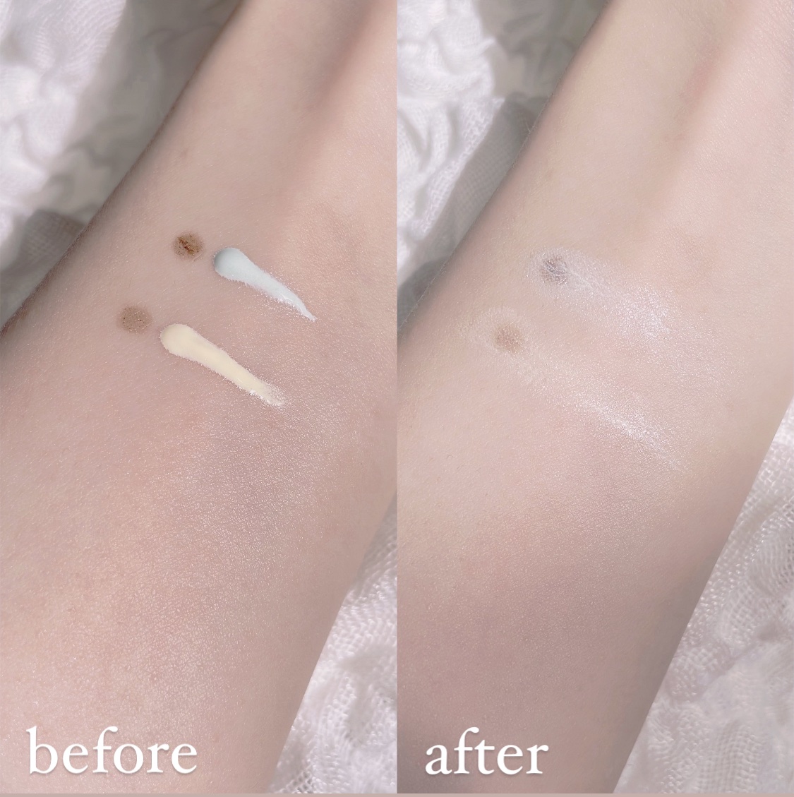 ■瞬間トーンアップ。■光が肌へ溶け込み、華やかなアイドル肌を演出。■紫外線吸収剤不使用。■保湿成分配合。■シルバーパールinでツヤ肌へ(スカイブルー)。 ★トーンアップベース〈01 ピーチピンク〉・くすみカバー&血色感アップ〈02 ライムイエロー〉・赤みカバー&色ムラ補正★トーンアップベースNA〈01 スカイブルー〉・透明感UP&黄み補正 柔らかいクリーミーなテクスチャーで、肌に伸ばすとしっとりとします。他のブランドのコントロールカラー下地に比べて、色味がハッキリしているところがこちらのベースの特徴かなと思います! そのおかげでしっかり赤みやくすみ、色ムラなどをカバーしてくれる感じがします♪