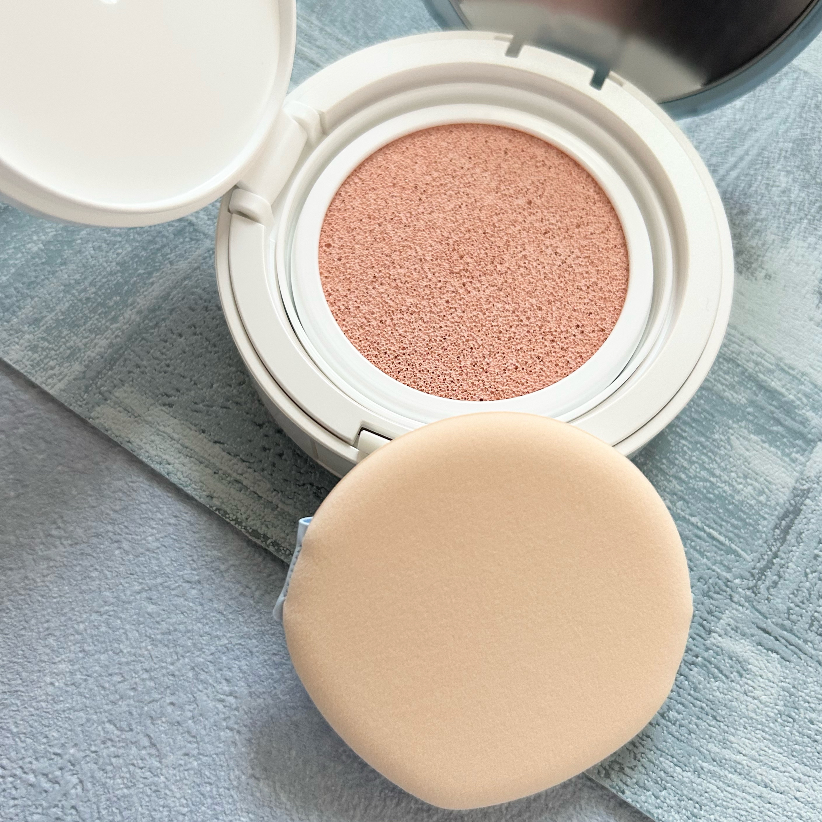 今までにないデニムデザインのクッションファンデ テンションが上がります.ᐟ.ᐟ 1回塗っただけで薄く馴染み、自然とナチュラルな肌へと変身💓 1回のタッチで肌に薄く・軽く密着するフォーミュラーで、どんな肌トーンでも似合うあざやかで繊細な肌を演出👍🏻 ̖́- パケがデニムデザインで今までにない可愛さ!!気分が上がります.ᐟ.ᐟ