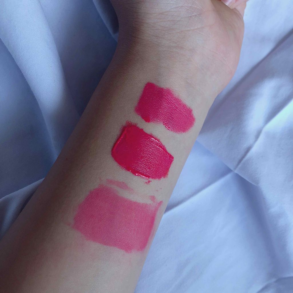 こちらはペリペラインクベルベットの4番のお色です!!2枚目の写真を見ていただきたいのですが、☆1番上→一度塗りした発色☆真ん中→3回程重ね塗りした発色☆1番下→3回重ね塗り.ティッシュで擦った発色という風になっております!▶︎発色★★★★★見...