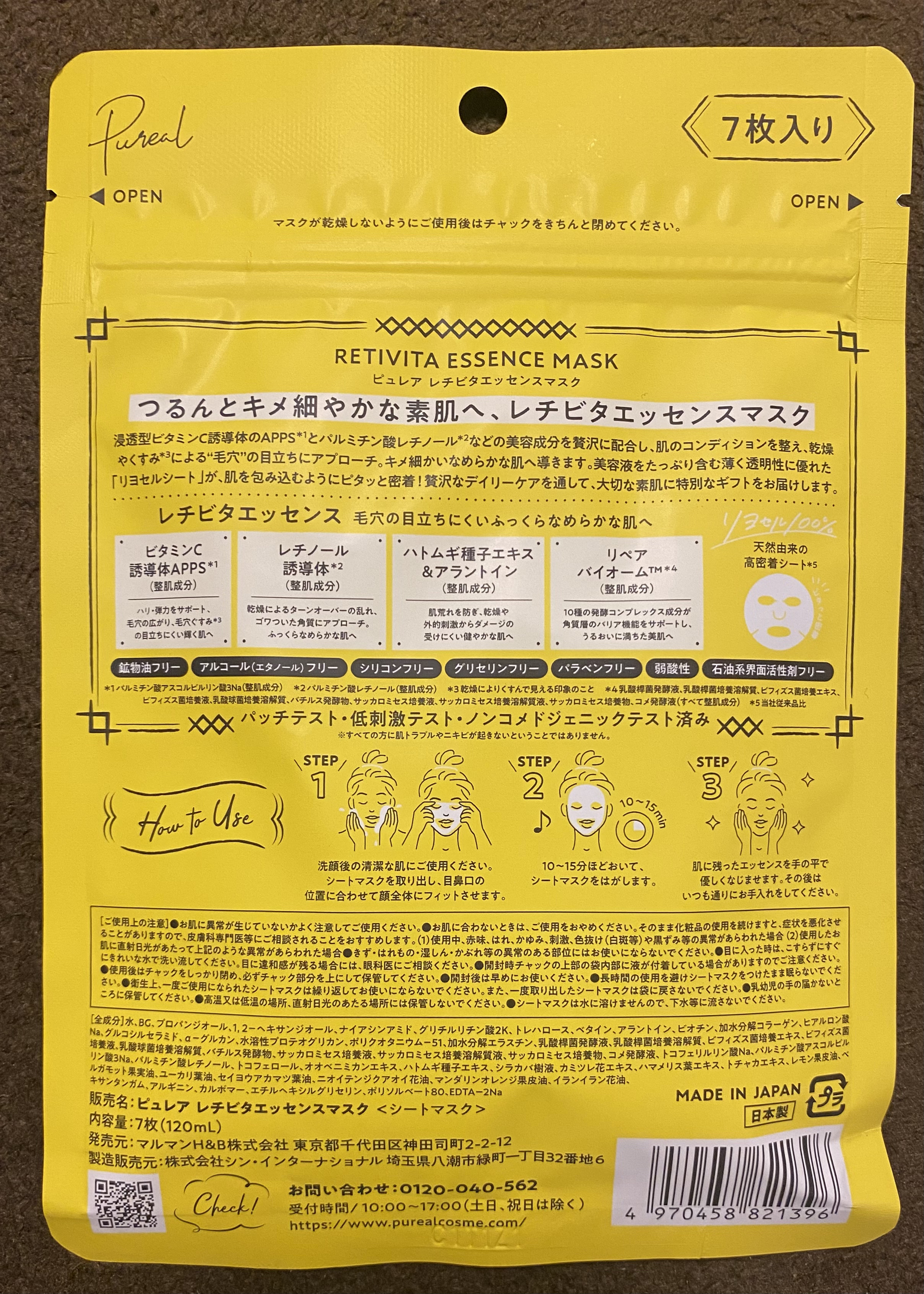商品詳細情報ピュレア レチビタエッセンスマスク