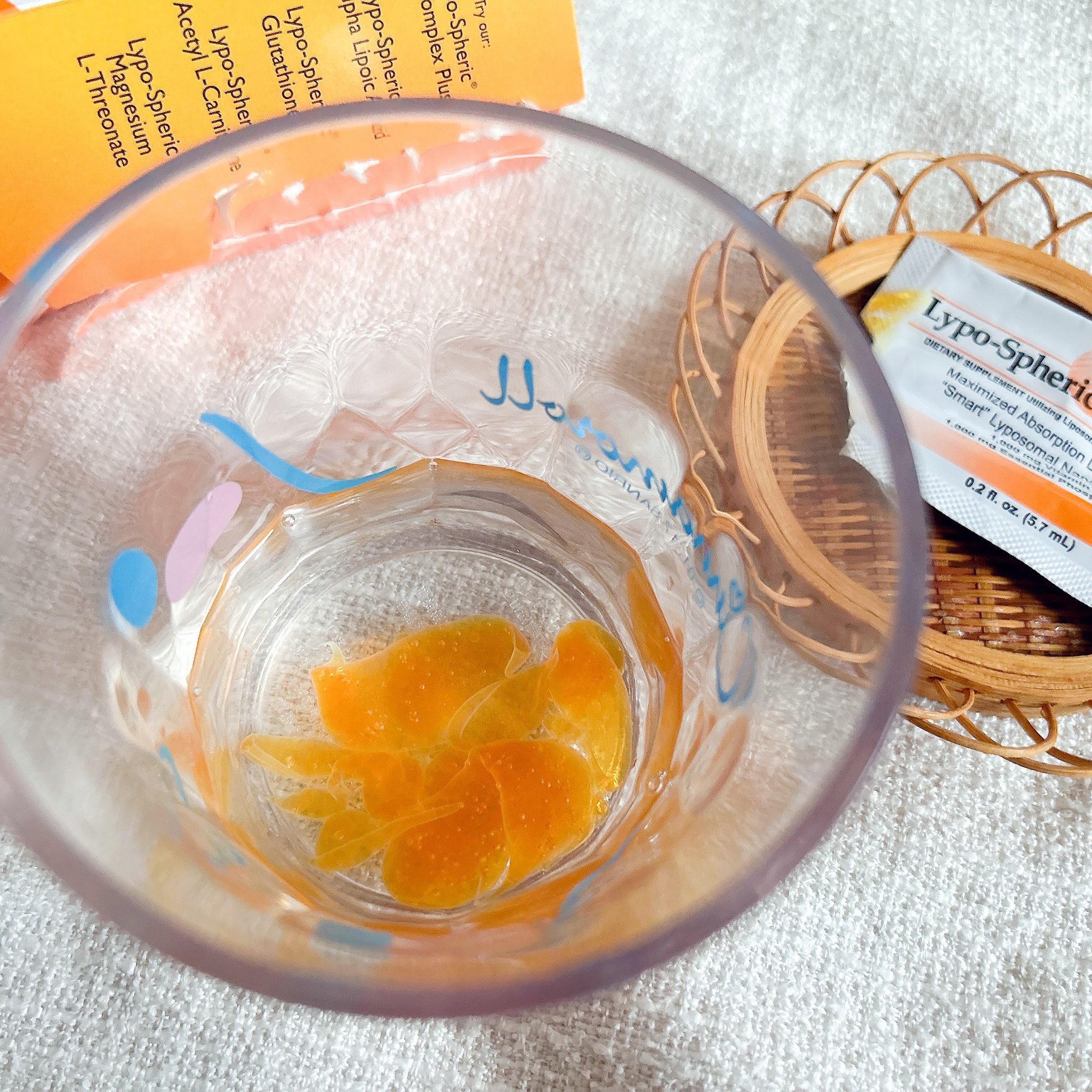 リポソーム化されたビタミンCで、ビタミンCの吸収率を高める効果があるそうです😌 夜をメインに飲んでいて、朝がちょっと起きやすい気がします。 15包ぐらい飲んで、腕の内側と外側の焼けた肌の境目が、前より少し薄くなったような感じがします。 みかんに香りが近いです。