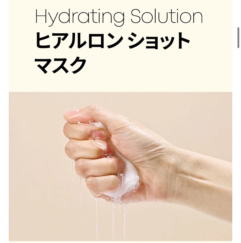 - ヒアルロン酸(保湿成分)美容液がたっぷり。ベタつきなく肌を保湿し、水分バランスを整えます。