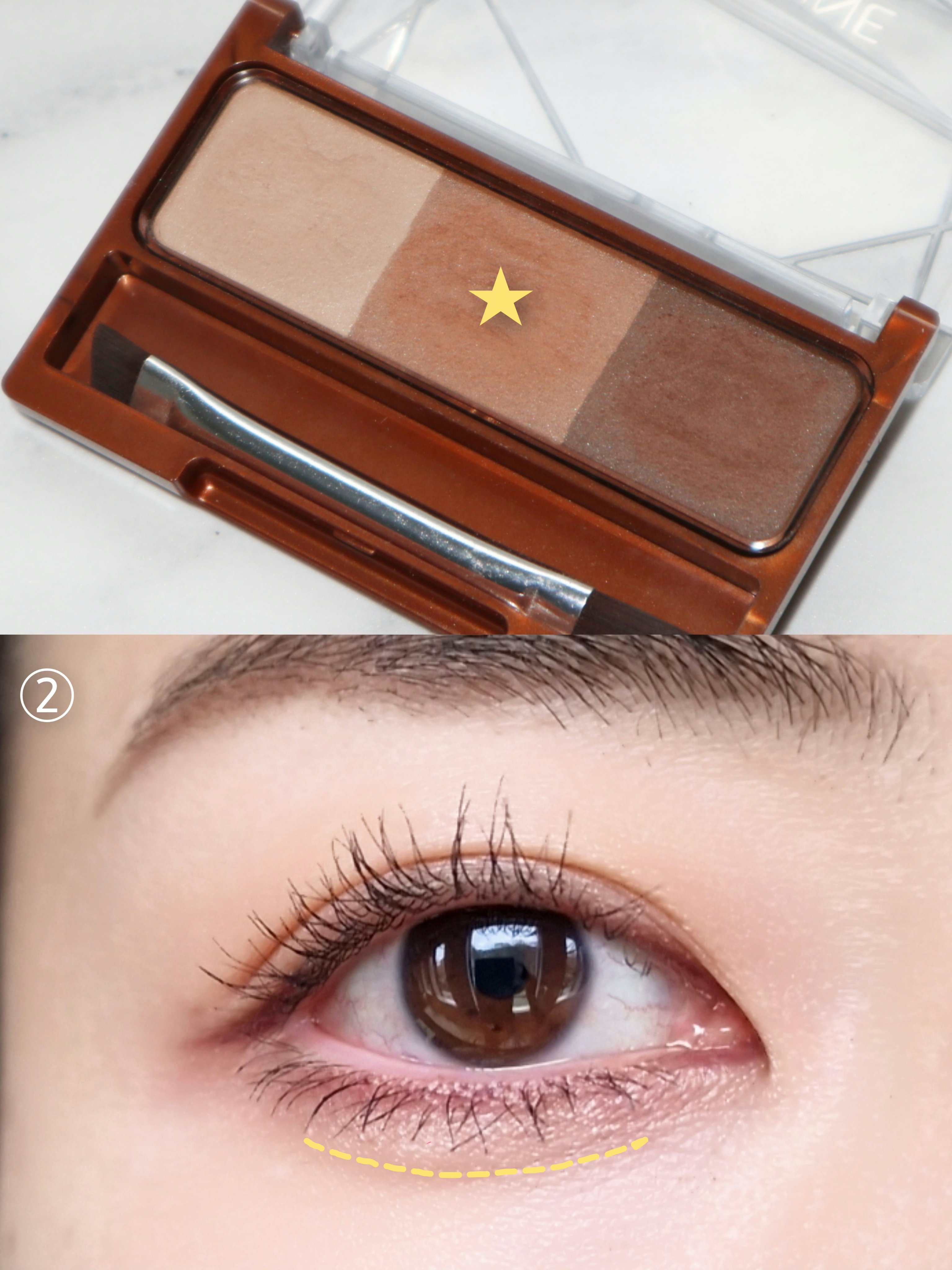 サンククルールクチュールは発色が強いので、ブラシでぼかした方が綺麗なグラデーションになります✨ 秋にぴったりなカラー「ミッツァ」🤎 今日は★マークを付けた3色を使って縦割りグラデにしました!目尻にかけて濃くなるようにグラデーション。
