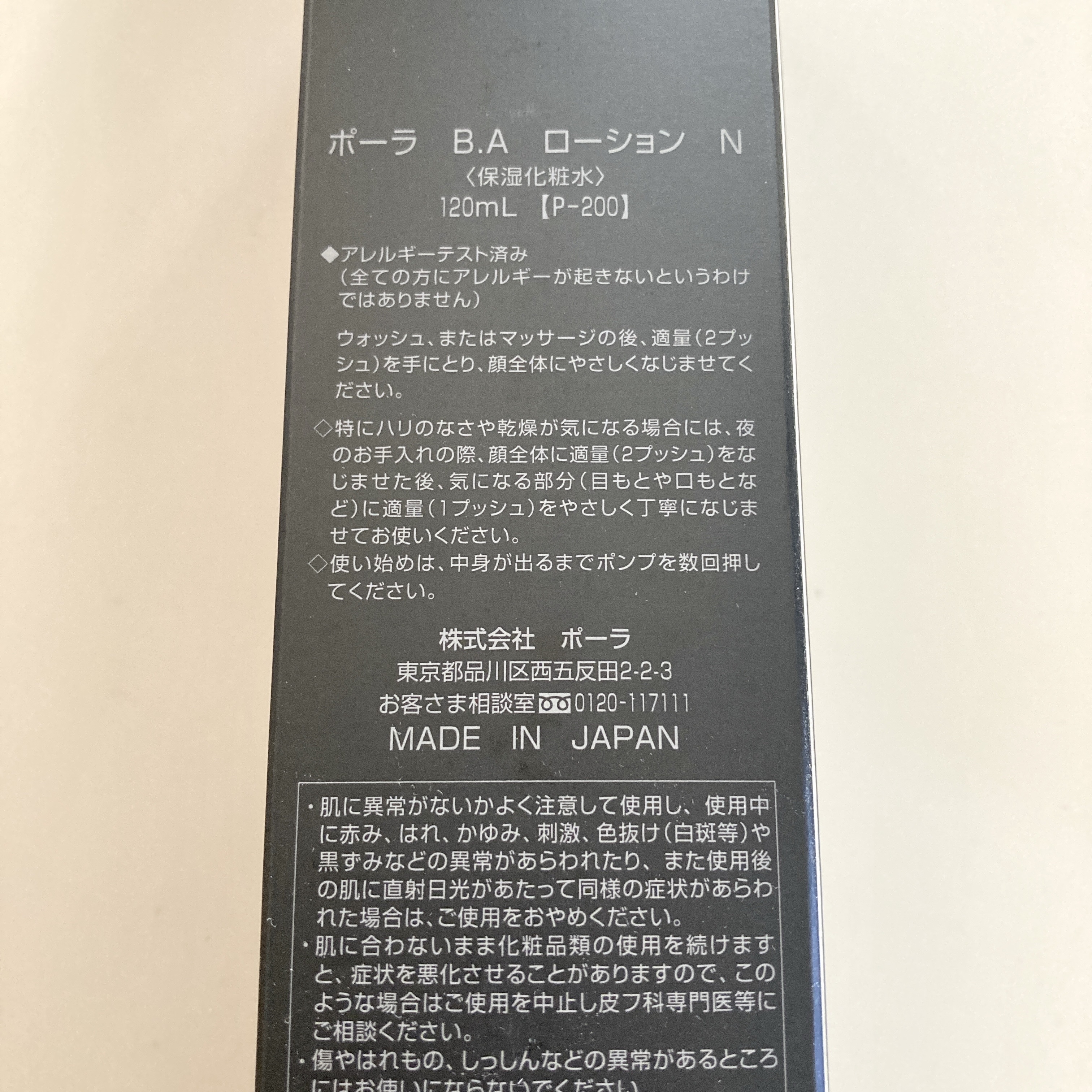 ポーラオリジナル複合保湿成分配合。 角層にみずみずしく吸い込まれるような、とろみのある触感の化粧水。 保湿力が高いので、乾燥が気になる季節にも頼もしい使用感です☻ そして香りが強いアイテム=刺激があるかな?という先入観もあったのですが 穏やかな使用感で使いやすくてとても気に入りました。 そして黒を基調としたシンプルなパッケージと ずっしりと重みがあるスタイリッシュなボトルも高級感があり お世辞にもお手頃価格とはいえないアイテムですが, 保湿力の高さと翌日のメイクのノリや肌の調子を見ると 自分の中では既に欠かせないアイテムなので、