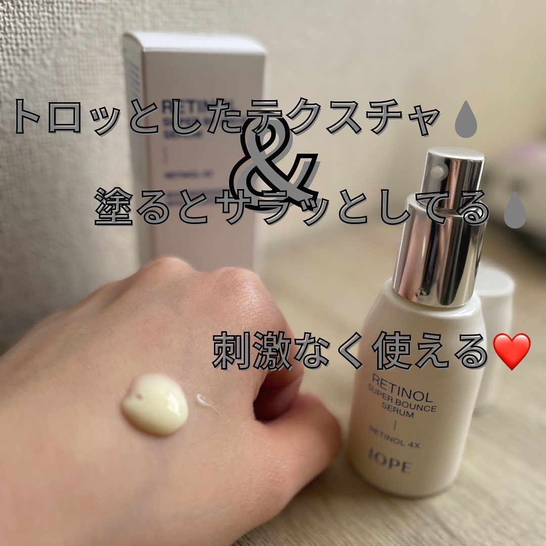 IOPEレチノールスーパーバウンスセラムを使ってみて、肌の変化がとてもあったのでびっくりしてからずっとリピートし続けています。鎮静効果と肌バリア回復に優れているので少し荒れて赤みの出た時も安心して使えました。毎日少しずつ赤みも引いてトラブルも...