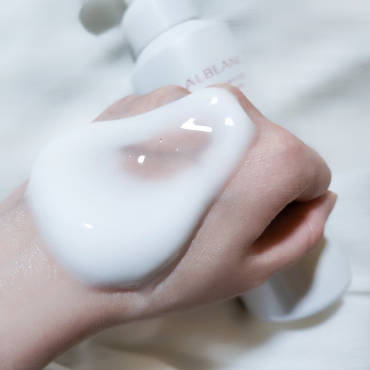 ALBLANC(アルブラン)マイクロムース リフレッシャー 朝のくすみを落として、明るい肌へ導いてくれる 炭酸泡のマッサージ洗顔とのこと 毛穴より小さいマイクロ泡を含む泡が古い角質や皮脂汚れをオフしてくれるんだそう ワンプッシュで濃厚な生クリームのようなもっちりとした泡がでてきます “もっちり”から“とろとろ”としたテクスチャーに変化するのも面白いです しっとりとした使い心地です マッサージ時の摩擦を軽減しながらやさしく使えるのがいいなと思います スプレータイプなので、忙しい朝でも使いやすいのが嬉しい うるおって明るい透明感のある肌を目指して使っていきたいです