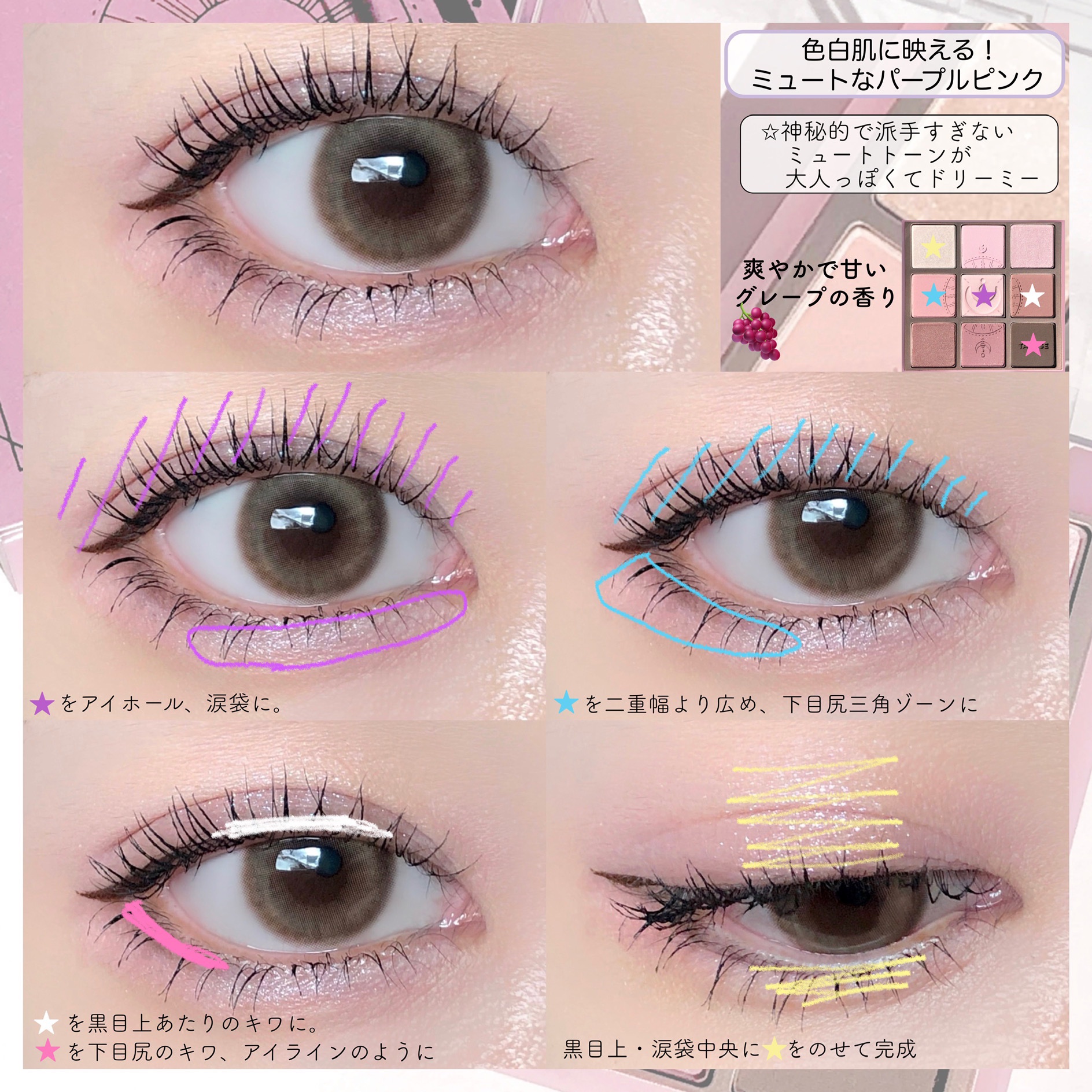 タロットデザインが可愛い💜ホリカホリカのモーヴ系アイパレホリカホリカのマイフェイブムードアイパレット09TAROREADER💜タロットカードをイメージした神秘的なパッケージがとにかく可愛いアイシャドウパレット。淡いラベンダーやモーヴ系のくすみ...