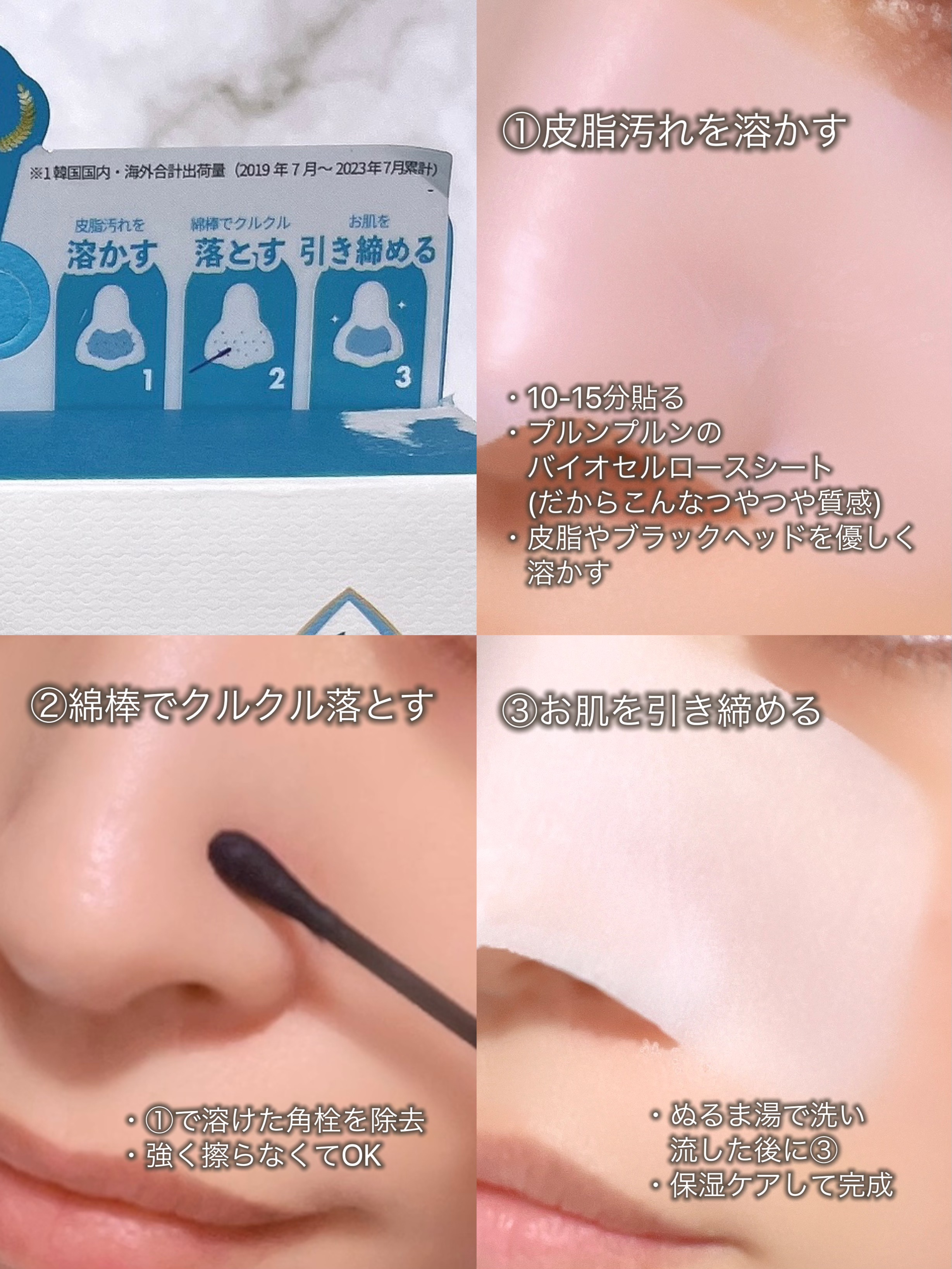 - 1-2STEPで毛穴の汚れを取り除き-肌引き締めて終わり! STEP 1こだわりの独自成分とシート素材で肌に優しい使い心地で皮脂、黒ずみ汚れを除去 STEP-2で 肌引き締め、肌を整える お鼻の黒ずみ汚れのお悩み、まろやかに一気に除去!