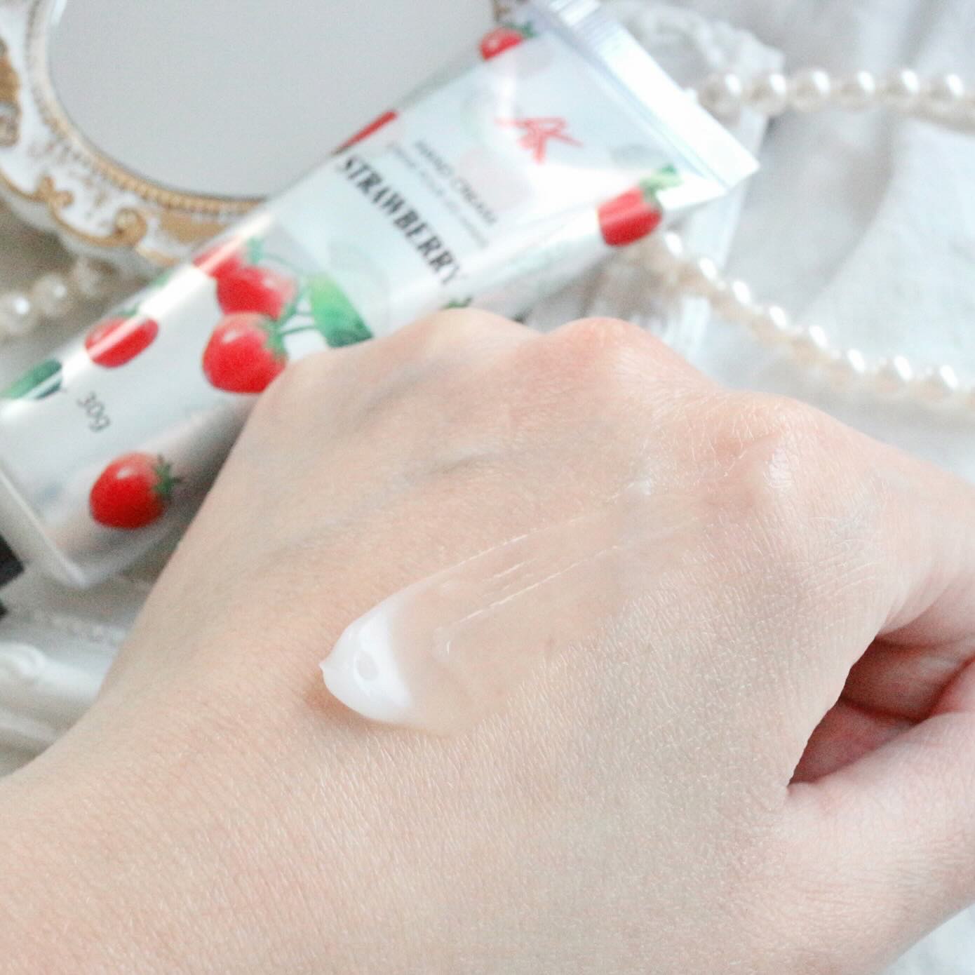 ぷるぷるのシルキーなクリーム、馴染ませると水分が出てきてするする広がる…! すぐにベタ付きがなくなって、スマホやパソコンをさわれるのも良い♪ ふんわりイチゴの香りも楽しめた🍓 プチプラだったのに凄く良かった🥹